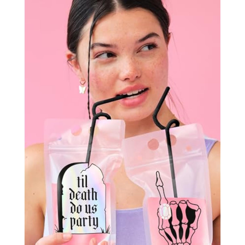 | Bride Or Die: Our 15 Pack Rip Single Life Iridescent Foil Drink Pouches Are The Bachelorette Party Or Bridal Shower Addition You'Ve Been Looking For + A Hit! | | Party Ready: Have Fun Celebrating With This Rip Single Life Pouch + Straw Set! The Pouches Come With "Rip Single Life", "Till Death Do Us Party" And Ring Finger Designs! We Include 5 Pcs Per Design. | | Squad Approved: Have Fun Celebrating With These Bride Or Die Iridescent Foil Design Drink Pouches! | | Spill Proof: Say Goodbye To Spills With Our Resealable Pouches; Each Pouch Comes With A Black Twirly Straw! | | Raise A Glass: Get Ready To Use These Pouches Again + Again! They'Re Made Of Durable Bpa-Free Material And Can Hold Up To 15 Oz Of Your Drink Of Choice! | | For Every Event: One Size Fits All! Whether You'Re Hosting A Bachelorette Party Or Bridal Shower.. Our Pouches + Straws Will Look Fab! | | Cute Stuff Inside: And Outside, Too! Every Set Comes Gift-Ready For Your Favorite Bride-To-Be'S Bach Party! | |