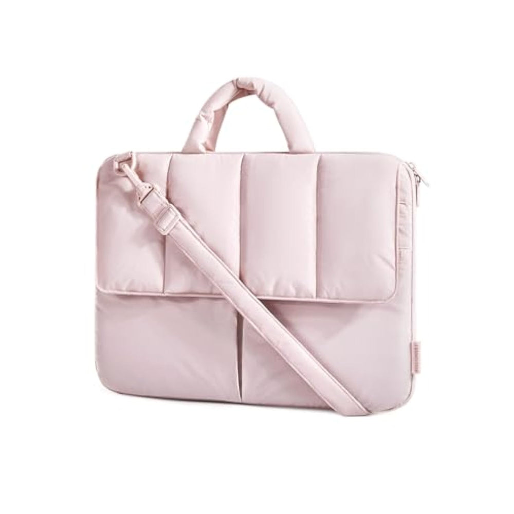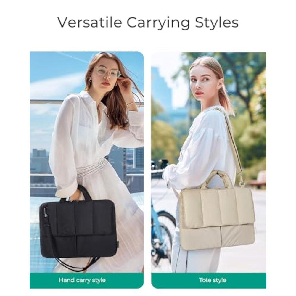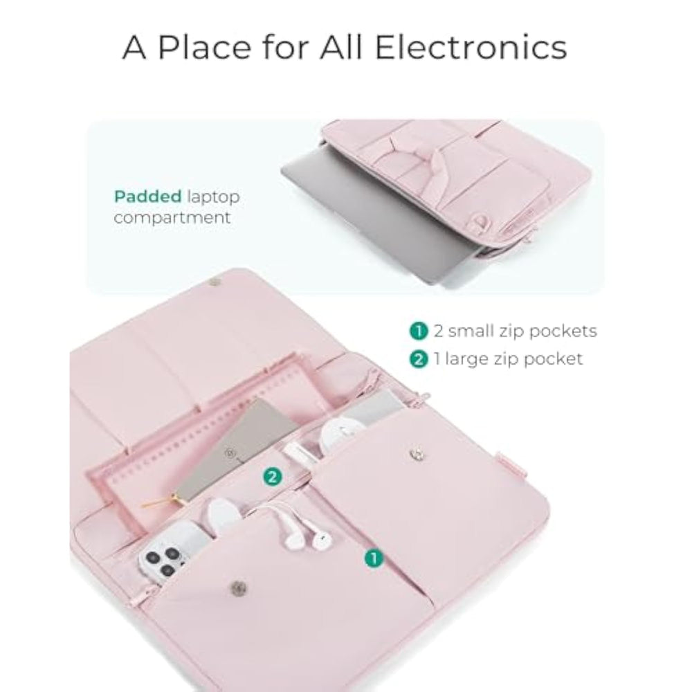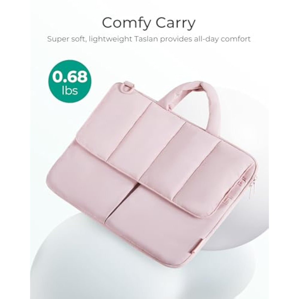| Ultra-Light Soft AS A Cloud?At just 15.1"×11.0"×0.6", our laptop sleeve is your new featherweight champion! Crafted from dreamy Taslon fabric, it's so light and soft, you'll forget you're carrying it. This laptop case is like a cozy hug for your device. Perfect for the on-the-go professional who wants to travel light without sacrificing style or protection. | | Four-Layer Of Protection? This isn't just a laptop bag, it's a high-tech sandwich of safety! Layer 1: Fluffy Taslan (for that plush feel). Layer 2: 5mm padded cotton (because your laptop deserves a mattress too). Layer 3: 3mm EPE foam (the bouncy castle of protection). Layer 4: Soft velvet lining (because even laptops appreciate luxury). Together, they form the ultimate defense system for your precious tech. It's like a medieval castle, but for your MacBook! | | Smart Multi-Pockets? Who doesn't love a good pocket party Our laptop sleeve comes with two zippy front pockets and one larger pouch, perfect for all your tech trinkets and treasures. Stash your Bluetooth earbuds, mouse, passport, tissues, or even your iPad - we won't judge! And for all you safety-conscious folks, we've added a secure magnetic clasp. It's like a bodyguard for your belongings? | | Designed With You In Mind: We've packed this laptop case with more features than a Swiss Army knife! Secure magnetic clasps Check. Comfy padded handle You bet. Smooth dual zippers Oh yeah. Luggage strap for easy traveling Of course! Adjustable and detachable shoulder strap Absolutely! We've thought of everything to make your life easier and your laptop happier. It's like having a personal assistant. | | One Size Fits (Almost) All: This versatile laptop bag is the chameleon of the tech world - it fits most 15-16 inch laptops! Whether you're sporting a MacBook Pro, Dell XPS, HP Pavilion, Lenovo ThinkPad, or any other popular 15.6-inch model, we've got you covered. It's like a tailor-made suit for your laptop, ensuring a snug and stylish fit. Your device will feel like it's walking the red carpet every time you take it out! | |