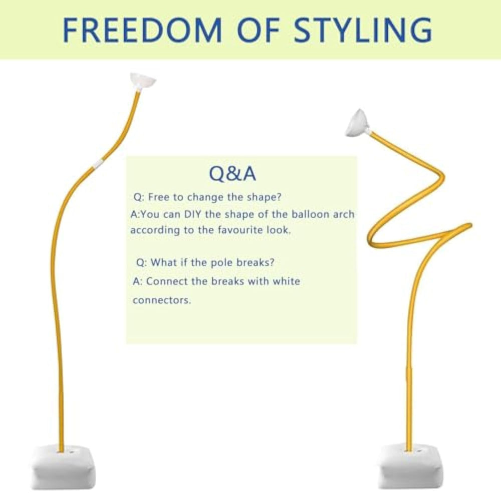 | Freely Bendable: To Meet The User'S Individual Requirements, The Balloon Arch Stand Is Made Of Pvc Tubing, Which Can Be Bent To Change Its Shape, Half Balloon Arch Can Be Diy Into Creative Shapes To Make Your Event Stand Out. | | Stable Design: The Balloon Arch Stand With Base Is Equipped With Two Water Bags To Increase The Bearable Weight, Which Greatly Increases The Stability Of The Balloon Arch. The Distance Of The Base Can Be Adjusted According To Your Needs. | | Easy Assembly: To Install Half Arch Balloon Stand, Simply Attach The Water Bag Filled With Water To The Base, Then Bend The Hose Into Your Favourite Shape And Insert It Into The Base. The Balloon Arch Is Reusable, Balloon Flower Clips Can Be Used To Connect Balloons To Create Balloon Flowers. | | Product List: Golden Balloon Arch Kit Includes 2 Pvc Tubes (2.5M And 1.5M), 2 Pvc Rigid Tubes, 2 Water Bags, 2 Bases, 2 Balloon Cups, 40 Balloon Flower Clips And 1 Balloon Pump. | | Wide Use: The Floor Balloon Stand Is Suitable For All Kinds Of Scenes. Whether It Is A Wedding, Birthday Party, Graduation, Anniversary, Halloween Or Christmas, It Is A Good Choice. | |