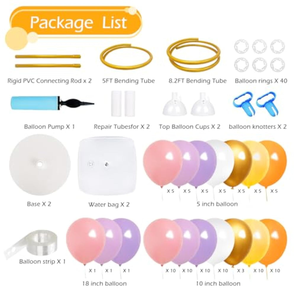 | ?Diy Balloon Arch Shape As You?: Our Balloon Arch Stand Has Excellent Flexibility, It Can Be Twisted And Bent, You Can Freely Change Shapes According To The Event'S Theme. Whether It'S Circular, Semi Circles Or Other Creative Shapes, You Can Quickly Build Them, Adding A Unique Charm To Your Event | | ?Perfect Balloon Arch Kit?: The Balloon Arch Kit Stand Contains: 101 Pcs Balloons,1 X 8.2Ft Bending Tube, 1 X 5Ft Bending Tube, 40 X Balloon Clips, 2 X Balloon Base, 2 X Water Bags, 2 X Connecting Rods, 2 X Knotter, 1 X Manual Pump, 2 X Top Balloon Cups, 1 X Balloon Arch Strip, 2 X Repair Tubes And User-Manual. The Balloon Arch Kit Includes Everything You Need, You Don'T Need To Purchase Any Additional Components | | ?Easy To Assemble?: Our Balloon Arch Kit Is Easy To Put Together And Adjust. Simply Connect The Bending And Straight Columns, Insert Them Into The Base. To Ensure Stability, Simply Fill The Water Bags And Attach Them To The Base. You Only Need 5-10 Minutes To Assemble A Balloon Arch, Making Party Prep Quick And Stress-Free | | ?Durable And Personalized Design? : This Gold Balloon Arch Is Made Of High-Quality Pvc Material For Stability And Durability. The Deformable Design Ensures That The Arch Can Be Bent And Shaped And Will Not Break Easily. It Can Be Created A Personalized Arch Shape According To Your Specific Needs. You Can Have The Freedom To Choose Between Using A Single Arch Or Combining Two Together To Create The Perfect Decoration | | ?Multiple Application Occasions?: Our Balloon Arch Stand Kit Achieves Your Decoration Possibilities In Various Occasions, Such As Birthday Party, Weddings, Baby Showers, Family Gatherings, Graduation Ceremonies, Halloween, Christmas Or Holiday Parties, Etc.The Balloon Column Stand Will Help You Create A Perfect Atmosphere, That Will Leave A Deep Impression On Your Guests | |