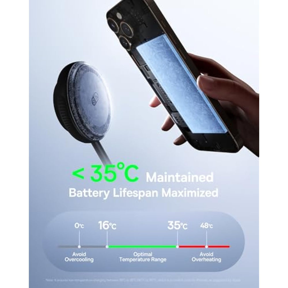 | Qi2 15W Wireless Charging: One of the fastest 15W wireless chargers due to the Baseus exclusive cooling tech. Charge an iPhone 15 Pro to 50% in just 30 minutes, offers unbeatable fast charging speed and performance, ideal for your iPhone and MagSafe-compatible devices. | | 3-in-1 Charging Station: This 3-in-1 Apple charging station designed for your Apple ecosystem, charge your iPhone, Apple Watch, and AirPods all at once. Innovative multi-device design simplifies your charging routine, keeping your home, office, or travel space neat and organized. | | Advanced CryoCore Cooling: Keep your devices charged at optimal temperatures and maximize the battery lifespan with CryoCore cooling technology, featuring semiconductor heat absorption and an assisted quiet cooling fan for remarkable heat dissipation. Operating at less than 35dB, it’s ideal for peaceful night use, and you can easily control the function with the physical button. | | Adjustable Stand: The MagSafe charger stand features a 0-70° adjustable angle (note: only vertical adjustment, no horizontal) and strong magnetic attraction for your comfortable viewing angle and secure charging. The magnetic plate for your Apple Watch also adjustable and foldable for easy customization and organization. | | All-in-One Charging Kit: Comes with a 45W USB C power adapter and a 1m/3.3ft USB-C cable to deliver fast charging right out of the box. For best results, use the included adapter and cable to maximize charging speeds and ensure optimal performance. | |