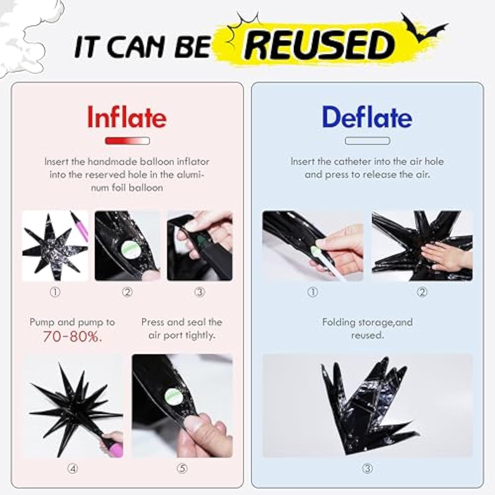 This 133-piece bat-themed balloon arch kit includes a mix of black, yellow, grey, and metallic silver balloons in various sizes, along with two 22-inch foil balloons, 12 bat decorations, glue dots, ribbon, and a decorative strip—everything you need to create a striking party display. Made from high-quality latex, the balloons are thick, elastic, and suitable for air or helium inflation. For best results, avoid overinflating and keep away from heat or rough surfaces. Easy to assemble with the included tools, this balloon garland is perfect for birthday parties, baby showers, or any bat-themed celebration, adding a fun and memorable touch to your event.