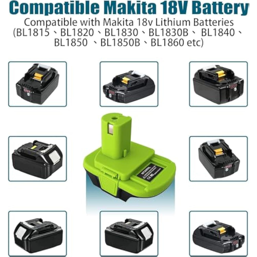 For Ryobi 18V Power Tools: Battery Adapter Convert For Makita 18V Li-Ion Battery To Replace For Ryobi 18V Batteries And Work For Ryobi 18V Power Tools, Which Means You Can Use Makiita 18V Batteries For Ryobi 18V Li-Ion Power Tools. | | For Makita 18V Battery Adapter: The Adapter Is 100% Fully Compatible With Makita 18V Li-Ion Battery Bl1815 Bl1820 Bl1830 Bl1830B Bl1840 Bl1850 Bl1850B Bl1860 Bl1860B Etc. It'S Not Compatible With Makita G Series Battery And Battery Not Included. | | Durable Safe To Use: Durable And Safe: The Adaptor Converter Made Of High Quality Material. Built In Multi-Protections For Safe To Use. Matched For Makita Lithium Battery Work For Ryobi 18V Tools. | | Easy To Use: Our Adapter Is Easy To Use, Just Follow 2 Steps: ? Insert 18V Makiita Li-Ion Battery Into The Base Of Our Adapter; ? Pull Them Together Into The Base Of Ryob 18V Power Tools; Then You Can Use The Ryob Tools As Normal. | | Satisfaction: The Package Includes 1.