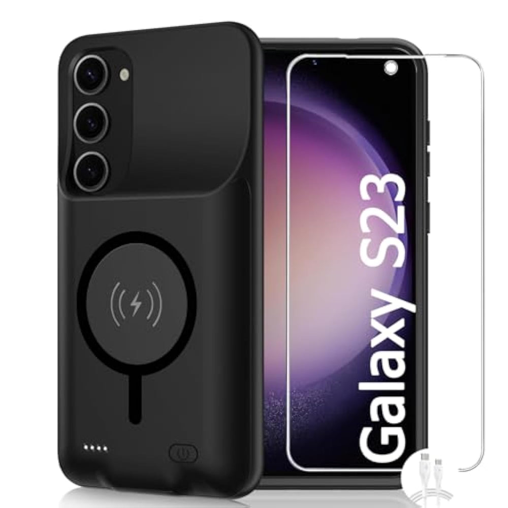 | [Safe Charging And Protection Design] Passed Ce, Fc, Rohs Certification To Ensure Your Charging Safety. Use High-Quality Battery Cells To Ensure Power, Safety And Reliability, And Long-Term Use Will Not Reduce The Health Of The Battery Life. | | [100% Or More Power] The 10000Mah Long-Lasting Battery Can Double The Daily Use Time Of Your Galaxy S23 And Keep The Power Of Galaxy S23 Longer. Enjoy More Talk Time, Music, Movies, And Internet Surfing. The Best Choice For Travel, Camping And Work. The Portable Design, Charging Anytime And Anywhere. | | [Fully Compatible With Galaxy S23 This Battery Case Is Compatible With All Functions Of Galaxy S23. Use The Original Data Cable To Charge And/Or Synchronize Data. The Certified Lightning Chip Ensures 100% Compatibility With Your Galaxy S23. | | [One-Piece Design, Easy To Use] The Shell Adopts Ergonomic Design And Is Comfortable To Hold. The Soft Rubber On The Curved Top Makes The Installation And Disassembly Of The Mobile Phone Easier. 4 Led Battery Power Indicators, Let You Know How Much Power You Have (0--25%--50%--75%--100%). | | [12 Months After-Sales And Technical Support]