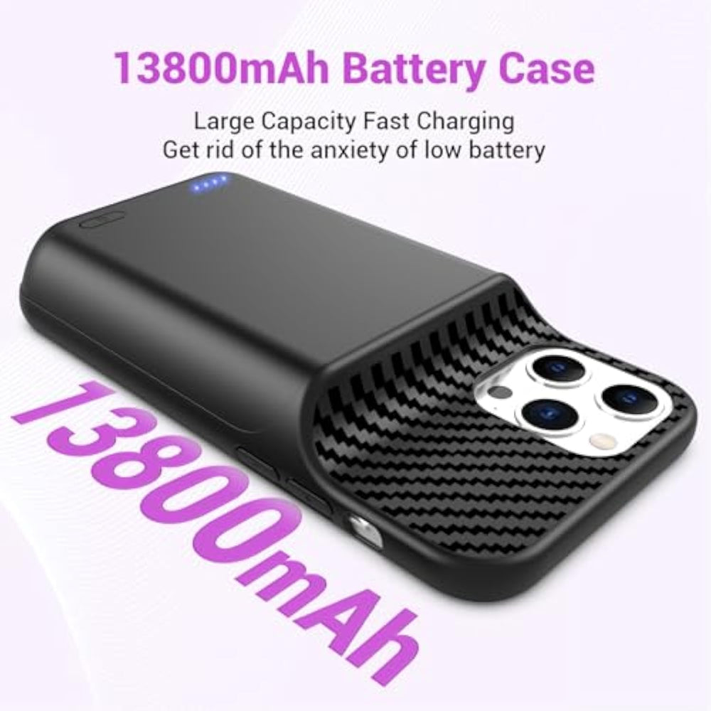 | ?Large Capacity 13800Mah Battery Case?Upgraded Powerful Battery Case Design 13800Mah The Thickness Is 0.92 Inch And Weighs About 6.6Oz, Designed For People Who Are Always On The Go, Elevates Your Iphone 12 Pro Max, 13 Pro Max Experience By Giving You Power Wherever You Go! | | ?Compatible Models?This Charging Case Works Seamlessly With Iphone 12 Pro Max, 13 Pro Max (6.7 Inch). Not Support Car Play, Not Support Wireless Charging. Please Fully Charge It When You First Receive It. | | ?Protective Design 2 In 1?The Charger Case Is Designed To Protect Your Iphone From Scratches And Scuffs, And There Is A Tempered Glass Screen Protector In The Package, Which Can Directly Use Your Iphone, Without Purchg Separately. | | ?Easy To Install And Use ?Upgraded 13800Mah Endurable Battery Double Your Iphone Power. Enjoy More Talk Time, Music, Movies, And Internet Surfing. Experience By Giving You Power Wherever You Go! The Best Choice For Travel And Work. | | ?Safe Charging And Indicator?The Led Indicator Lets You Know The Charging Status (0%-25%-50%-75%-100%). Our Battery Case Is Designed To Charge For Iphone 80% First Before Charging The Battery Case. Enjoy Hassle-Free Charging Of The Battery Case And Your Phone Together Without Removing The Case. | | ?What You Get?Battery Case X1, Tempered-Glass Screen Protector X1, User Manual X 1. And We Provide 24*7 Friendly
