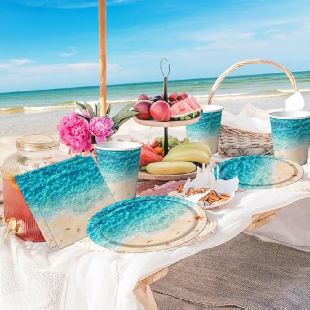 | ?Ocean Themed Party Decorations?You Will Receive 144Pcs Ocean Birthday Party Decorations Includes: 48Pcs Ocean Sea Plates (2 Sizes), 24Pcs Cups, 24Pcs Beach Napkins, 24 Knives And Forks, Our Beach Themed Party Decorations Will Bring You A Joyful Atmosphere. | | ?Beach Birthday Decorations?The Ocean Plates And Napkins, Cups Are Made Of High Quality Paper,Safe And Non-Toxic Material. It Is Convenient To Clean Up, So That You And Your Family And Friends Can Enjoy A Comfortable And Under The Sea Birthday Party. | | ?Ocean Sea Party Design?The Ocean Party Decorations Tableware Set Are Using Ocean Sea And Beach As The Main Element, Paired With Starfish, Shells, Conch Design,Making The Entire Design More Vivid And Bringing You A Better Beach Themed Birthday Party Experience. | | ?Beach Ocean Tableware Apply To?Our Ocean Birthday Party Supplies Tableware Set Are Suitable For Many Occasions,Such As Beach Party,Ocean Themed Party,Pool Birthday Party, Baby Shower Party, Summer Themed Party, Tropical Summer Party, Holiday Party, Hawaiian Theme Party, Your Friends And Family Will Love It! | | ?Service?Your Satisfaction Is Our Aim.We Offer Personalized Party Products And Satisfying Service. If You Are Not Satisfied With The Ocean Tableware Or Have Any Dissatisfaction, Please
