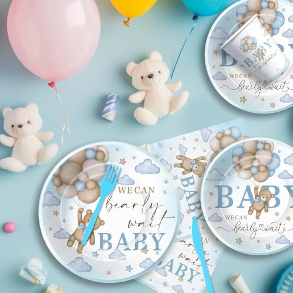 | ?Bear Baby Shower Party Decorations?Celebrate Your Baby Boy’S Arrival With Our Charming Blue Bear Baby Shower Party Tableware Set! Featuring Cute Bear Designs, This Set Creates A Sweet And Memorable Party Atmosphere | | ?Complete Party Solution?This Bear Baby Shower Table Decorations Tableware Can Accommodate Up To 24 Guests And Includes Everything You Need: 24Pcs 9'' Bear Baby Shower Dinner Plates, 24Pcs 7'' Dessert Plates, 24Pcs Napkins, 24Pcs Cups, 24 Sets Of Disposable Cutlery, 24Pcs Paper Straws, 8Pcs/Set Blue Bear Baby Boy Swirls, 1Set Bear Baby Shower Banner, 1Pcs Bear Baby Shower Tablecloth. Get These Bear Baby Shower Party Supplies To Elevate Your Celebration | | ?Premium Quality Materials?Made From Quality Materials, This Bear Decorations For Baby Boy Tableware Is Both Stylish And Reliable. Sturdy Plates And Cups Handle Meals With Ease, While The Napkins And Tablecloth Add A Touch Of Elegance To Your Celebration | | ?Versatile Usage?The Blue Teddy Bear Baby Boy Decorations Set Is Suitable For Various Baby Shower Themes And Styles. Whether You'Re Hosting Baby Showers, Gender Reveal Parties, First Birthdays, And Newborn Celebrations, The Adorable Teddy Bear Motif Adds A Touch Of Sweetness And Innocence To The Decor | | ?Easy To Cleanup?Host A Party With Disposable Baby Boy Decorations Tableware. After The Fun, Just Toss Them Out For An Easy Cleanup. Enjoy More Time Celebrating And Less Time Cleaning | |