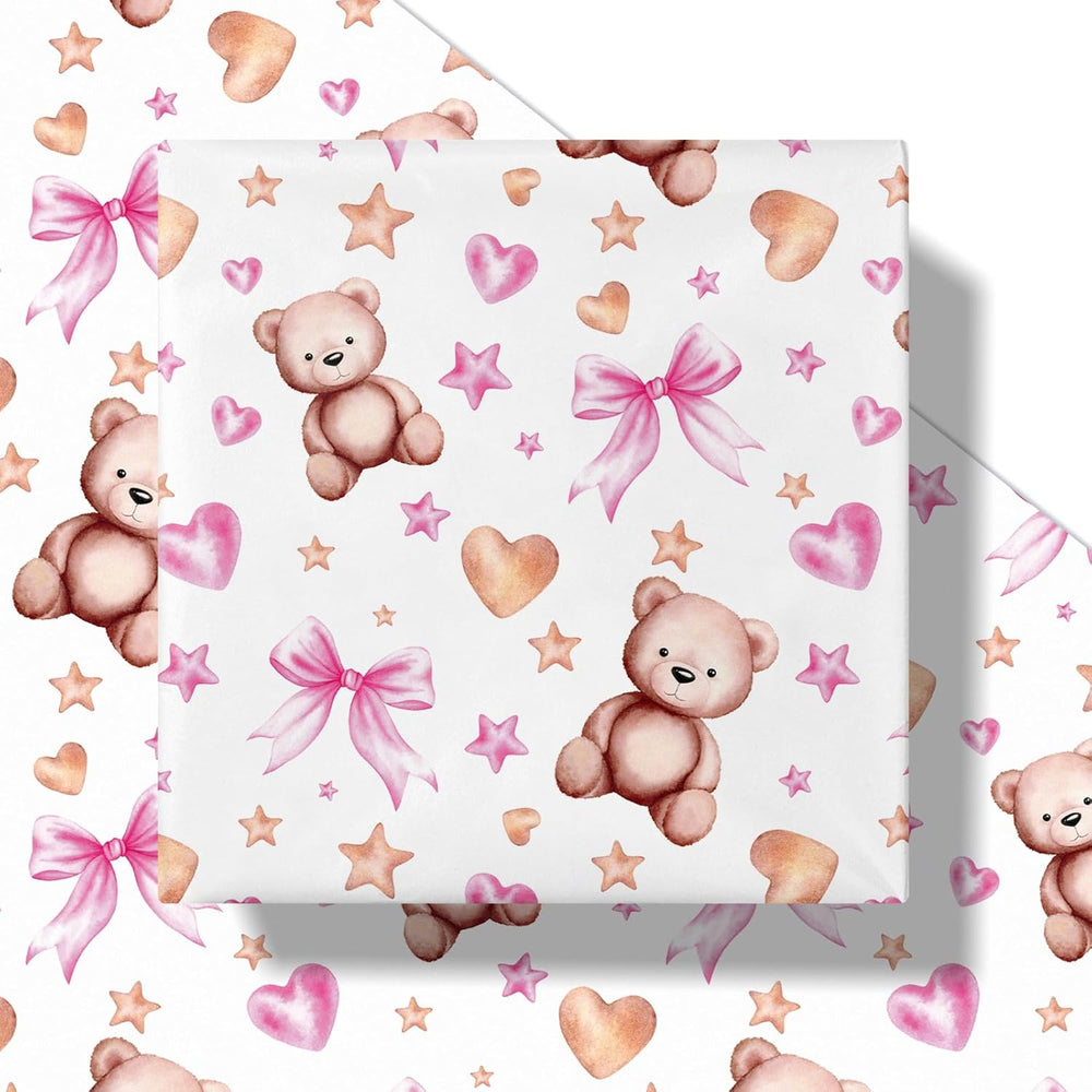 | Adorable Bear Design: This Wrapping Paper Features A Heartwarming Design With Cute Bears, Delicate Bows, Sparkling Stars And Soft Pink Hearts, Making It The Perfect Choice For Baby Girls And Adding A Sweet And Heartwarming Touch To Any Gift Easy To Store: The 17 Inches Wide By 16.4 Feet Long Is Designed For Convenience. The Compact Size Suitable For Small And Medium Gift Wrapping Paper, While Being Easy To Store Among Your Craft Supplies High-Quality Paper: Crafted With Durable Paper, This Gift Wrap Offers Excellent Strength And Reliability. Tear-Resistant And Durable, It Ensures Your Gifts Stay Beautifully Wrapped Without Ripping Or Wrinkling Practical Wrapping Solution: Crafted From Durable, Responsibly Sourced Materials, Our Wrapping Paper Is Designed With Minimal Waste In Roll Packaging And A Natural Look. Its Sturdy Design Allows For Multiple Uses, Offering A Stylish And Eco-Conscious Choice Ideal For Special Occasion: Designed Specifi