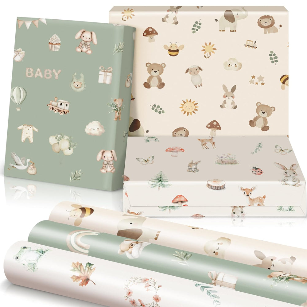 | Charming Baby Shower Wrapping Paper Set: ’S Lovely Baby Boy Girl Wrapping Paper Set Includes 3 Adorable Rolls Designed To Melt Hearts. Add Pure Cuteness To Your Baby Shower Gift Wrap And Celebrate The Joy Of New Beginnings With Every Lovingly Wrapped Gift Beautiful Designs - Too Cute To Resist: Fall In Love With The Sweetest Baby Shower Wrapping Paper Neutral Designs - Cute Animal Friends And Magical Elements Dance Across Soft Hues Of Cream, Beige And Sage. The Dreamiest Prints For A Woodland Baby Shower More Sized Just Right For Sweet Surprises: At 17”X120”, The Baby Wrapping Paper Rolls Are Narrower Than Standard, Making Them Perfect For Small To Medium Gifts. No More Struggling With Oversized Sheets, Make Every Gift Look Neat, Tidy, And Oh-So-Lovely With Ease! Quality You Can Feel: Made From Premium Paper, The Baby Shower Wrapping Paper For Both A Girl And A Boy Is A Joy To Work With. Every Fold And Cut Is Effortless, Allowing You To Focus On Creating Beautifully Wrapped Gifts That Show Just How Much You Care Perfect For Every Precious Moment: Celebrate The Magic Of Every Little Milestone With The Enchanting Wrapping Paper For A Baby Shower And Beyond! Perfect For Baby Showers, Newborn Celebrations, Birthdays And More - Add A Loving, Heartfelt Touch To Every Gift