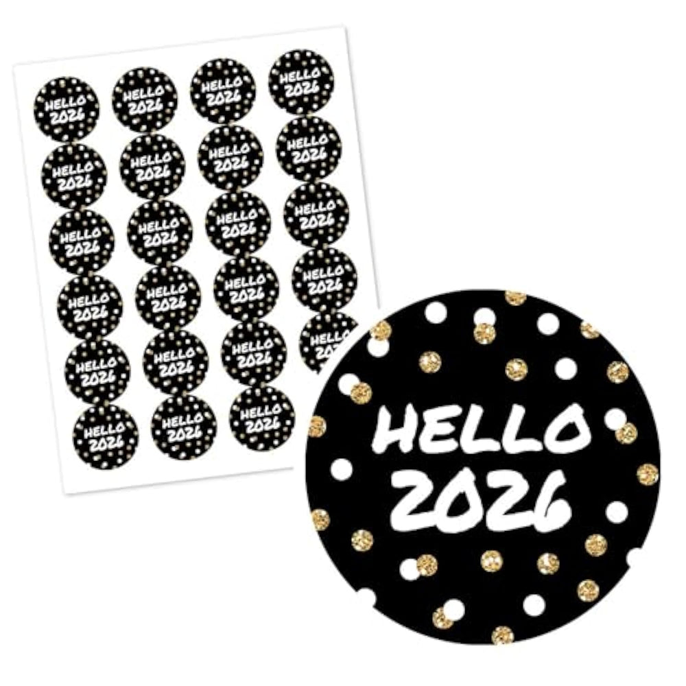 | Pop, Fizz, Clink! Circle Sticker Labels INCLUDES 24 round stickers – perfect for styling adorable black and gold 2026 New Year’s Eve party favors, or for sealing invite and thank you envelopes. | | Pop, Fizz, Clink! round stickers MEASURE 1.66 inches diameter and will quickly add a personal touch to all your New Year’s Eve party favors. | | EASY PARTY DECORATIONS: Pop, Fizz, Clink! stickers are an easy-to-use DIY party supply to add to your list of decorations. Use New Year’s Eve party stickers on cups or centerpieces to create fun placesettings; add to party favors; or use afterward in your party scrapbook. Get creative with your black and gold DIY New Year’s Eve party decoration ideas! | | PREMIUM PARTY SUPPLIES: Pop, Fizz, Clink! round sticker labels are professionally printed on sticker paper with a photo-like shine. They are individually inspected and carefully packaged by hand. Bring your do-it-yourself party ideas to life when you add Pop, Fizz, Clink! circle stickers to your party decor. | | MADE IN THE USA: Pop, Fizz, Clink! - New Year’s Eve Party Circle Sticker Labels are designed and manufactured at our Wisconsin facility using materials that are Made in the USA. Pop, Fizz, Clink! Candy Stickers use a No-Mess Glitter Print: Our stickers are designed with a printed image of glitter, eliminating glitter flake while maximizing bling effect! | |