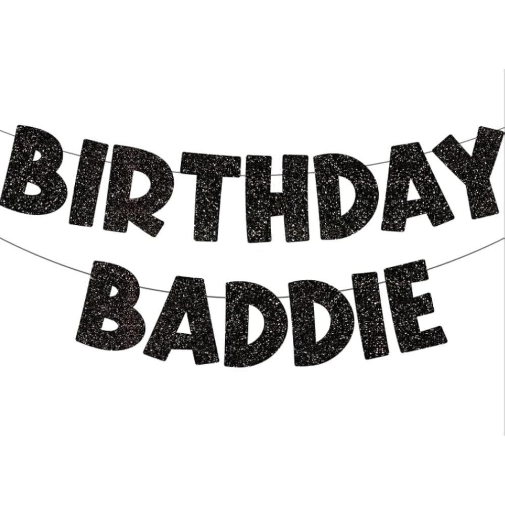 | Funny Birthday Banner: Our Black Glitter Birthday Banner Has Text ''Birthday Baddie" In Gorgeous Fun Text Style. You Will Be The Star Of The Birthday Party With A Unique Banner And It Makes An Ideal Party Prop For The Birthday Photos! The Perfect Accessory For Your Party Outfit | | Perfect Gift For Fun Birthday Party: This Banner Is Great For Any Themed Birthday Parties. Whether You Are Celebrating A 13Th "Official Teenager", 16Th"Sweet 16", "Finally 18 And Legal", "21St And Legally Drunk", "Dirty 30", "Rip To My 30S" 40Th Birthday, "50 And Fabulous", "Over The Hill" 60Th Birthday, Our Banner Makes You Feel Extra Special On Bday | | Excellent Material: Birthday Baddie Banner, These Popular Party Decorations Banner Are Made Of Glitter Paper, Which Is Thick Enough And Not Easy To Bend And Not Fragile, Perfect For Any Birthday Party Decorations | | Versatility: It Is The Best Choice For Your Birthday Party Decoration. Adding A Sparkling Scenery To Your Or Your Friends Or Family Birthday Parties. You Can Hang It At The Door Of Your Party, In Front Of The Table Or On The Wall. It Is Your Best Choice Photo Props | | String It Yourself: Our Birthday Banner Each Approx 5×6.2 Inches, The Total Length Is 190 Inch?It Only Takes A Few Minutes Of Your Time To Assemble It, Our Packaging Comes With Plastic Needles So That You Can Quickly Thread The Banner In Place. You Just Need To Pass The Ribbon Through The Plastic Needle, And Then Use The Plastic Needle To Pass Through The Letter Cards | |