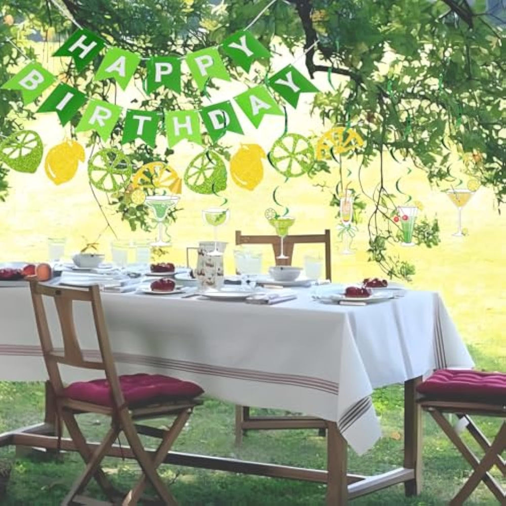 | Package Include : Each Set Include: 1,Green Happy Birthday Banner Letters X13Pcs(11.5*16Cm). 2,Martini Hanging Swirl Streamers X6Pcs. 3,Lemon Decorative Banner X8Pcs. | | Birthday Party Decoration:You Can Hang The Birthday Decor Banner On Walls, Glass, Rooms, Outdoor Yards, Classrooms, Trees,Mantel,Doorway, Patio, Sun Room, Wherever You Want To Decorate. It Is Very Suitable For Birthday Decorations. | | Easy To Assemble Remove:It'S A Easy-To-Assemble Birthday Party Decorations,You Can Enjoy The Preparation Time With Your Family Or Friends. We Provide Needles, Threads, And Other Tools That Can Be Quickly And Easily Assembled To Create A Beautiful Decoration,It’S Really Easily Hangs And Take Down The Decorations. | | High Quality And Reusable: Crafted From Eco-Friendly Materials, These Happy Birthday Party Decorations Are Designed To Be Durable And Visually Appealing. It’S Reusable And Can Stand Up To Multiple Uses Without Fading Or Tearing, Meant To Be Used Time And Time Again As Long As You Fold It Up And Put It Away Neatly. Don'T Have To Buying New Decorations Every Time You Throw A Party. | | Vibrant Color:The Bright, Vibrant Color Making Your Party Stand Out. These Birthday Banner And Hanging Swirls Will Elevate The Ambiance Of Your Party Venue. Leave You A Fun Party Time And A Lasting Impression And Unforgettable Fond Memories On Your Guests. | |