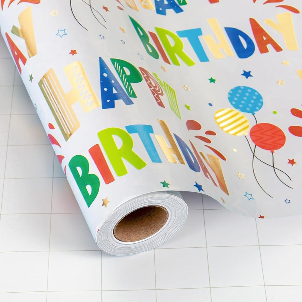 | Gold Foil Design: Reversible Design, One Side Has Colorful Gold Foil Happy Birthday Text And Cute Balloons, The Pattern Color Changes When Held To The Light Or Viewed From Different Angles, Making The Gift More Gorgeous. Mini Roll: 1 Roll Of Wrapping Paper In Total. The Size Is 17 Inches Wide X 32.8 Feet Long. These Rolls Are Not Standard Width, They Are Shorter Than Usual, Perfect For Small And Medium Gifts. Material: Made Of High-Quality Ordinary Coated Paper, Durable And Tear-Resistant, With Advanced Printing Technology And Bright Colors. You Can Easily Cut And Customize The Wrapping Paper Roll To Fit The Length Of Your Gift Without Wasting Any Paper. No Crease: Roll Packaging, Consisting Of 1 Individual Plastic Wrap, Is Not Folded, So There Is No Crease! It Will Not Leave Any Creases, Making Your Gifts Look Perfect, Also Great For Diy Crafts And Home Decoration! The Item Comes With Shrink Wrap To Protect The Package From Scratches And Dust. Brand Service: If You Have Any Questions About The Product Or Order, Please Feel Free To