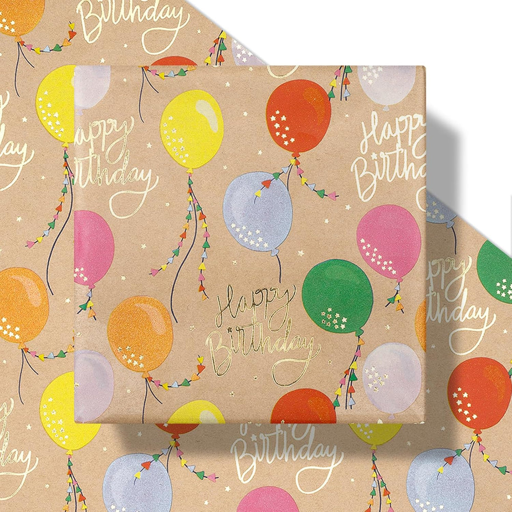 | Vibrant Birthday Gift Wrap: Featuring Colorful Colorful Gold Foil Balloons And Bold "Happy Birthday" Text, Adding Charm And A Playful Touch To Your Gift Presentation, Perfect For Creating A Festive Atmosphere At Any Birthday Celebration Generous Size: This Jumbo Roll Provides 30 Inches By 32.8 Feet Of Wrapping Paper, Offering Plenty Of Coverage For Both Small And Large Gifts. It’S Ideal For Wrapping Multiple Presents, Creating Party Decorations Or Using In Diy Projects High-Quality Kraft Paper: Crafted With Durable Kraft Paper, This Gift Wrap Offers Excellent Strength And Reliability. Tear-Resistant And Durable, It Ensures Your Gifts Stay Beautifully Wrapped Without Ripping Or Wrinkling Practical Wrapping Solution: Crafted From Durable, Responsibly Sourced Materials, Our Wrapping Paper Is Designed With Minimal Waste In Roll Packaging And A Natural Look. Its Sturdy Design Allows For Multiple Uses, Offering A Stylish And Eco-Conscious Choice Perfect For Any Celebration: This Gift Paper Is Ideal For Both Kids And Adults, Making It A Great Choice For Birthdays, Gatherings And Holiday Parties. Its Versatile Design Suits Both Boys And Girls, Adding A Vibrant Touch To Any Occasion