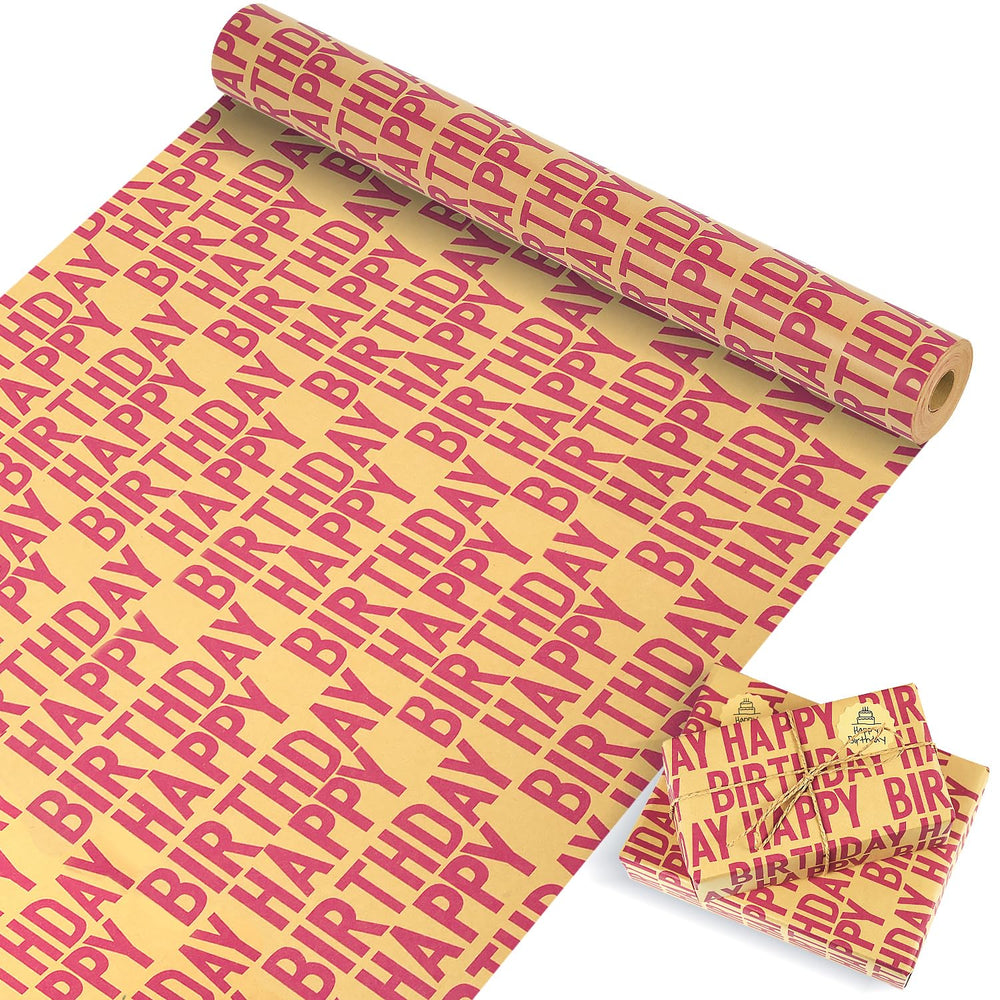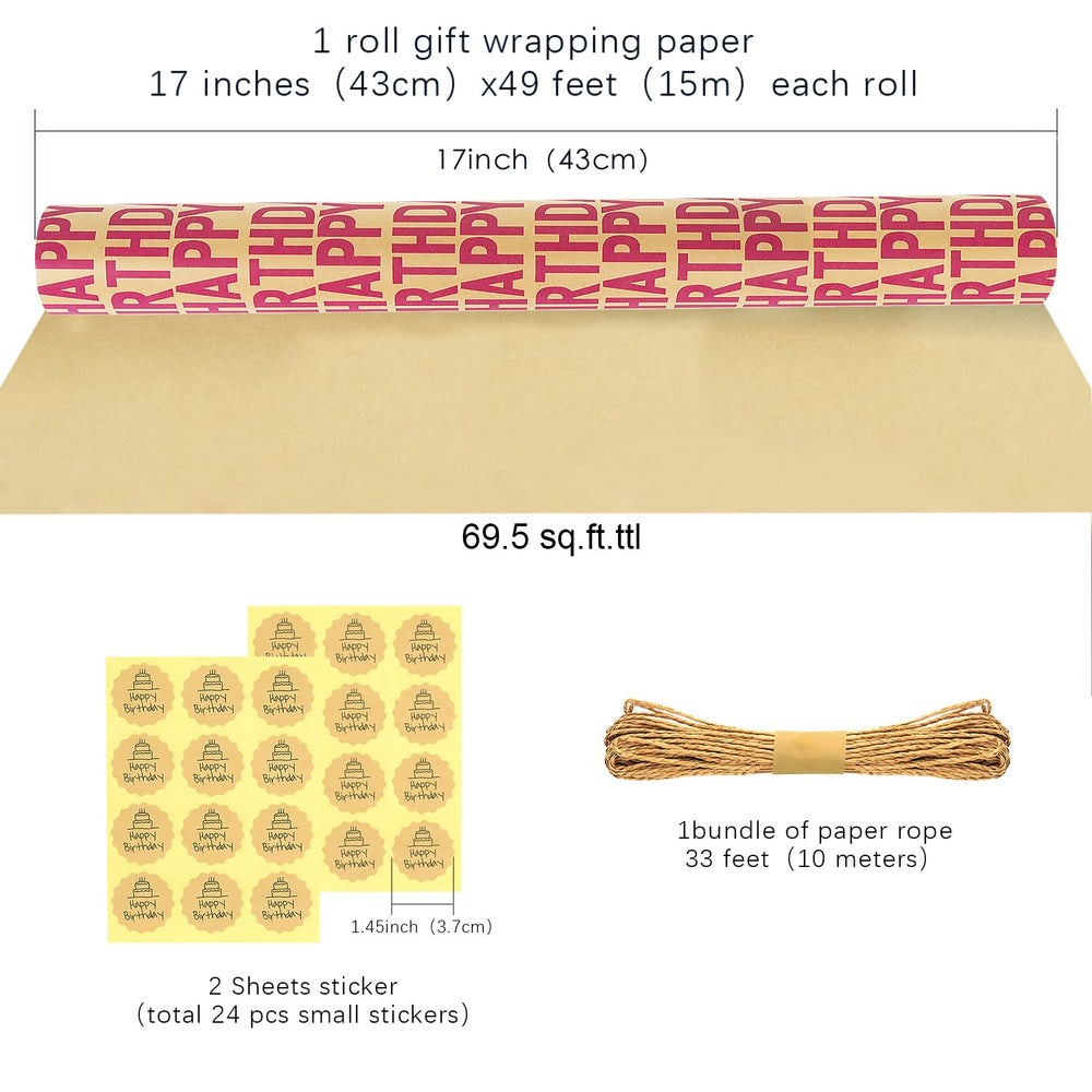 | Value Gift Wrapping Paper Set: The Birthday Wrapping Paper Set Comes With A Large Roll Of Red Wrapping Paper, 2 Sheets Stickers(24Pcs) And 1 X 10M Paper Rope, Which Are Enough For Your Gift Wrapping. Jumbo Roll Wrapping Paper: This Happy Birthday Wrapping Paper Roll Measures About 17 Inches Wide And 50 Feet Long, Totaling Approximately 70 Square Feet. The Size Of Each Sticker Diameter Is 1.45 Inches. Perfectly Sized To Wrap A Wide Variety Of Gift Boxes And Packages. Premium Quality: This Red And Brown Packaging Paper Roll Is Made Of High-Quality Kraft Paper Material. It'S Sturdy And Will Not Easily Break. You Can Quickly And Effectively Wrapping Gifts, And You Can Also Use Them Multiple Times. Happy Birthday Design: Gift Wrapping Paper Roll Designed With Red "Happy Birthday" Blessing Words. The Simple And Elegant Design Makes Your Gift Suitable For All Birthday Occasions . Perfect Wrapping Paper For Boys, Girls, Men And Women. Widely Applications: This Kraft Paper Gift Wrapping Roll Can Be Used For Everyone'S Birthday Occasions Or Baby Showers, Meeting The Needs Of Anyone'S Birthday Gift Occasions. It Is Also Very Suitable For Bouquet Packaging And Other Related Craft Projects.