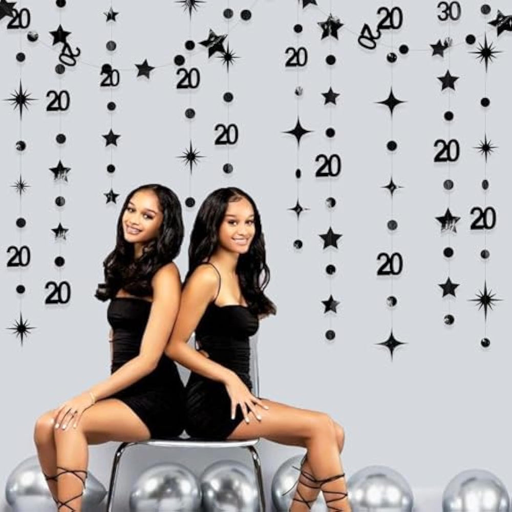 | ?? Package Includes - 4 Strings Of 11.5 Feet/3.5 Meters Metallic Black Number 20 Sparkling Twinkle Star And Circle Dots Garlands , Totally Is 46 Feet/14 Meters. | | ??Environmental Material - Our Black 20Th Birthday Decorations For Women/Men Garland Are Made With High Quality Double Sided Metallic Paper Cardstock, Carefully Hand-Made And Connected With Thread, Durable And Reusable In Nice And Bright Colors. | | ?? Adorable Party Décor- Our Black Number 20 Circle Dot Twinkle Star Garland Kit Is Perfct For Girls/Boys 20Th Birthday Party, 20Th Birthday Decorations For Women, 20Th Birthday Decorations For Men, 20Th Birthday Party Supplies, I Am 20 Bitches Party, 20 And Fabulous Party, 20Th Anniversary, Cheers To 20 Years Party, Twenty Party, Wedding, Bridal Shower, Birthday, Christmas, Barbecue, Home, Engagement, Christenings, Fetes, Etc | | ?? Easy To Assemble - Unravel The Entire String And Hang It Up With Care To Avoid Twist. Our Star And Circle Dot Garlands With Figure 20 Can Be Cut To Different Lengths. Just Hang It On The Walls,Windows, Dessert Tables, Gift Tables, Tree Branches, Fences, Hallway And Other Indoor And Outdoor Places You Like. | | ??
