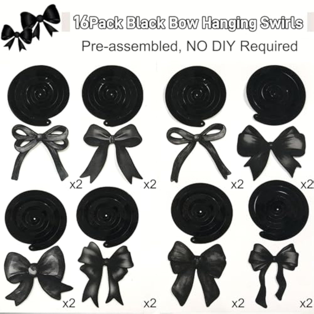 | Black Bow Party Decorations: Elevate Your Celebrations With The Stylish Black Bow Hanging Swirls, Ideal For Adding A Touch Of Elegance To Any Event, From Birthday Parties To Coquette-Themed Gatherings | | Unique Bow Design: Stand Out With The Unique Black Bow Birthday Decorations, Featuring A Chic Combination Of Bows That Enhances Your Decor And Sets The Ideal Mood For Memorable Celebrations | | Easy To Hang: Designed For Convenience, The Black Bow Decorations For Party Setups Can Be Effortlessly Hung Or Draped, Allowing You To Focus On Enjoying The Festivities Without The Hassle Of Complicated Arrangements | | Versatile Use: Ideal For Various Occasions, These Black Bow Hanging Swirls Are Suitable For Birthdays, Baby Showers, And Any Celebration That Can Benefit From A Stylish Touch, Making Them A Must-Have In Your Party Supply Collection | | Wide Range Of Applications: Whether You'Re Planning A Coquette Birthday Party Or A Chic Black And White Themed Event, This Black Bow Hanging Swirls Will Complement Your Decor And Impress Your Guests | |