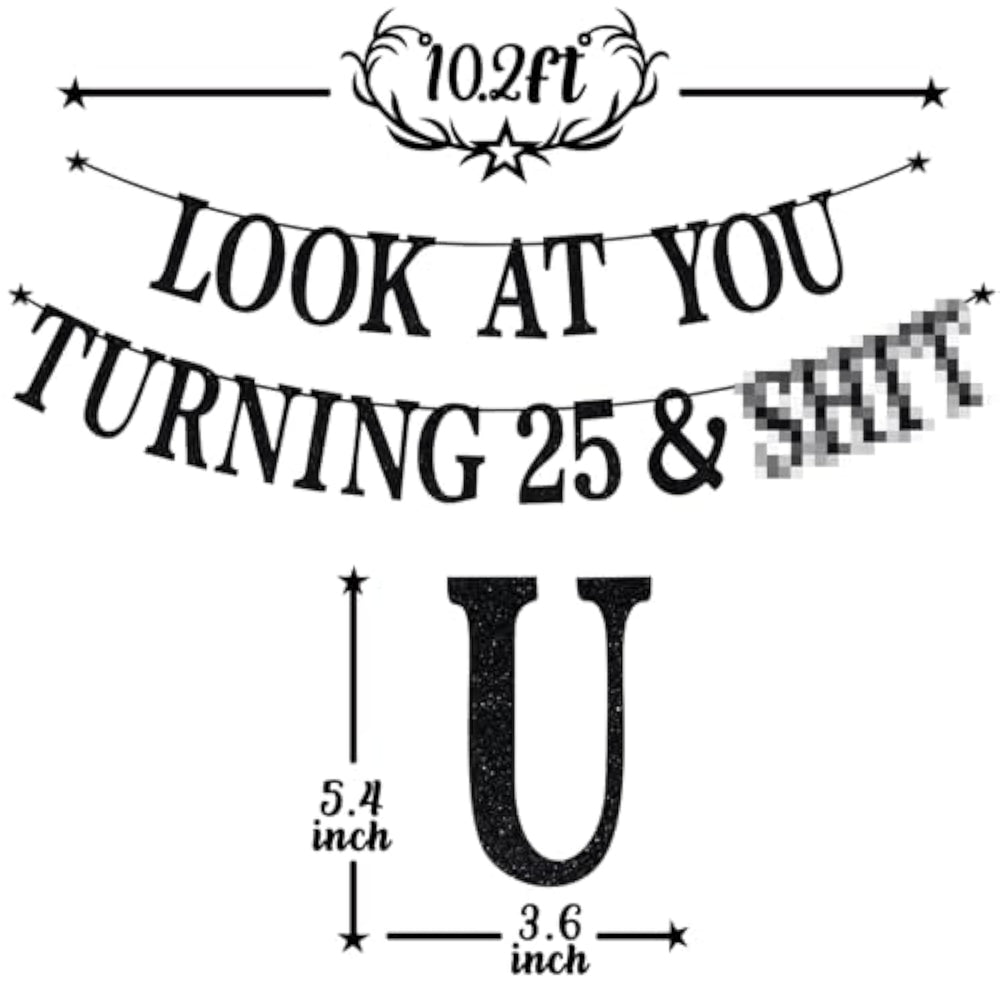 | Application: This Banner Is Very Suitable For 25Th Birthday Party, It Will Make Such A Meaningful Day Even More Memorable. | | Perfect Design: In Order To Meet The Requirements Of Many People, And Through A Series Of Investigations, We Have Designed Such A Unique Banner. I Hope It Adds A Little Sparkle To Your Party. | | Easy To Diy: Each Card Measures "3.7" Wide And "3.3" Tall, Some Diy Required, The Banner Needs To Thread Together By Yourself, The Spacing Between The Cards Is Adjustable. | | Excellent Quality: We Select The Better Material For You, The Banners Are Made Of 300G Glitter Premium Paper That Is Non Toxic, Harmless And Tasteless Material Composition. | | Timely After-Sales Survice: You Can Get A Refund Unconditionally If You Are Not Satisfied With It. If You Have Any Questions,Please