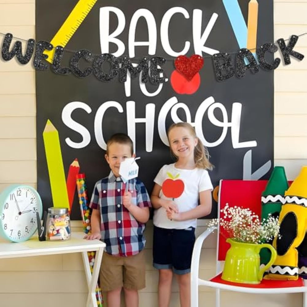 | Welcome Back Sign:You Will Get 1 Pcs Black "Welcome Back" Letter Banner.The Theme Is Simple And Clear, Perfect For Back To School Party Decorations | | High-Quality:Welcome Back Banner Is Made Of High-Quality 250G Glitter Card Paper With Clear Pattern Printing. It Can Be Used For A Long Time, Will Not Fade, And Can Be Reused | | Easy To Use:Each Piece Of The Welcome Back Banner For Office Has Been Punched. You Only Need To Use A Needle And A Ribbon To Assemble It. You Can Diy With Your Children To Complete Party | | Welcome Back Decorations:Welcome Back Banner Are Perfect For Welcome Back To School Decorations,Welcome Back Decorations Office,Welcome Home Decorations,First Day Of School Decor,Back To School Decorations For Classroom,Etc | |