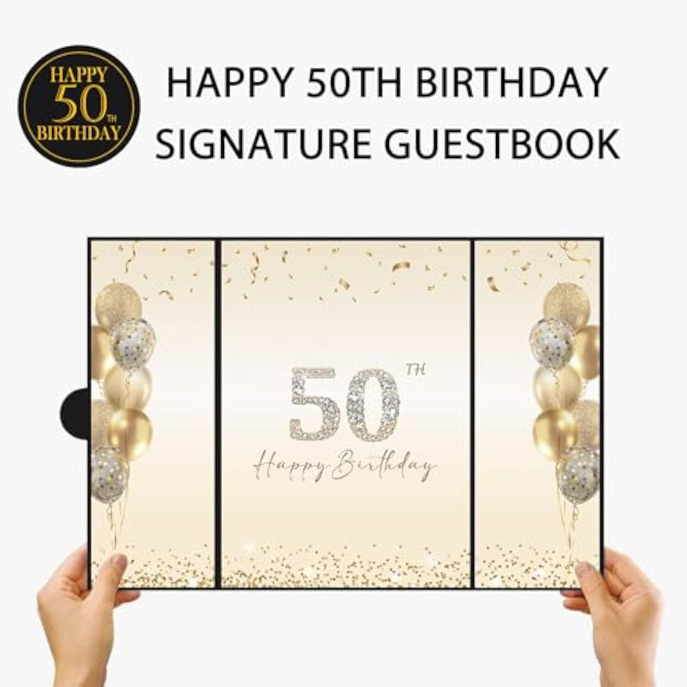 | ?Package Included? - You Will Get A Happy 50Th Birthday Signature Guest Book(Without Pen). It Doesn'T Need To Assemble And Is A Practical Tool To Sign The Names Or Blessings Of The Guests At The 50Th Birthday Party. It Is Durable And Suitable For Long Term Storage For You, Your Friends Or Family Beautiful Memories. It Will Not Fade For Years, Perfect For Writing, Durable, Suitable For Long Term Storage. You Can Look Back Over Time At Your Amazing Creation. | | ?50Th Birthday Gift? - 50Th Birthday Is A Significant Milestone And Worth Taking The Time To Celebrate! It Is An Excellent Way For Your Guests, Friends, Family, And Coworkers To Create A Sincere And Timeless Souvenir Instead Of The Often Impersonal And Forgotten Ordinary Gifts. Our Happy 50Th Birthday Certificate Guest Book Can Be Beautifully Displayed And Appreciated For Years To Come Because Of The Durable Finish. | | ?Perfect Size? - The Cover Of Happy 50Th Birthday Signature Sign Is Approx. 45.6 X 30.6 Cm/ 18 X 12Inches; The Left And Right Inner Page Is Approx. 10.5 X 30Cm/ 4.1 X 11.8Inches; The Middle Inner Page: Approx. 21.5 X 30 Cm/ 8.5 X 11.8Inches. It Is A Fun Party Decoration Idea For The 50Th Birthday. You Can Make Your Keepsake Unique And Keep Them Endlessly. | | ?Unique Design? - The Framed Cover Of The 50 Birthday Certificate Gift Is Professionally Designed With Pearlescent Frosted Paper, With A Gilded Round Badge. There Are Three Parts Of The Inner Page For Signature. The Internal Middle Page Contains The Words "Happy 50Th Birthday". Easy To Write On And Won'T Smear Or Easily Tear. You Can Sign The Best Blessing And Wishes For Your Friends, Family, Or Colleagues As A Perfect Gift. | | ?Wide Application? - Decorating Your Home And Party With Our Gold 50Th Birthday Certificate Poster Card Will Be A Big Hit At Your 50Th Birthday Party. This Cheers To 50 Year Old Party Decoration Is Easy To Match With Other Party Supplies, Creating A Warm Vibe For Your Party. Perfect As A Decoration For Birthday Parties For You, Your Family, Friends, Or Coworker. The Framed Black Gold 50Th Birthday Guest Book Can Be Displayed Anywhere In The Home Or Office As Cherished Reminders Of The Special Day. | |