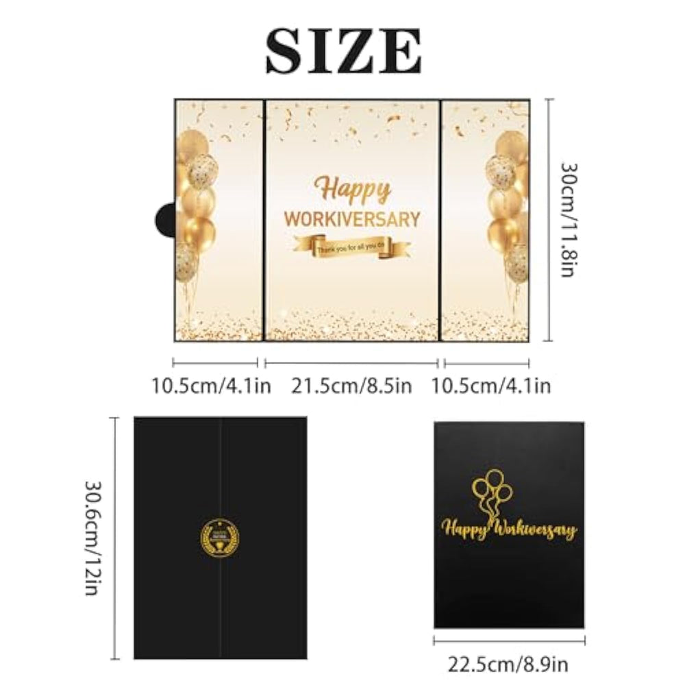 | ?Package Included? - You Will Get A Happy Workiversary Signature Guest Book(Without Pen). It Doesn'T Need To Assemble And Is A Practical Tool To Sign The Names Or Blessings Of The Guests At The Work Anniversary Party. It Is Durable And Suitable For Long Term Storage For You, Your Friends Or Family Beautiful Memories. It Will Not Fade For Years, Perfect For Writing, Durable, Suitable For Long Term Storage. You Can Look Back Over Time At Your Amazing Creation. | | ?Work Anniversary Gift? - Work Anniversary Is A Significant Moment And Worth Taking The Time To Celebrate! It Is An Excellent Way For Your Guests, Friends, Staff, And Coworkers To Create A Sincere And Timeless Souvenir Instead Of The Often Impersonal And Forgotten Ordinary Gifts. Our We Business Anniversary Certificate Guest Book Can Be Beautifully Displayed And Appreciated For Years To Come Because Of The Durable Finish. | | ?Perfect Size? - The Cover Of Happy Work Anniversary Signature Sign Is Approx. 45.6 X 30.6 Cm/ 18 X 12Inches; The Left And Right Inner Page Is Approx. 10.5 X 30Cm/ 4.1 X 11.8Inches; The Middle Inner Page: Approx. 21.5 X 30 Cm/ 8.5 X 11.8Inches. It Is A Fun Party Decoration Idea For The Workiversary Party Of Boss, Employee, Coworkers Or Friends. You Can Make Your Keepsake Unique And Keep Them Endlessly. | | ?Unique Design? - The Framed Cover Of Work Anniversary Gift Is Professionally Designed With Pearlescent Frosted Paper, With A Gilded Round Badge. There Are Three Parts Of The Inner Page For Signature. The Internal Middle Page Contains The Words "Happy Workiversary". Easy To Write On And Won'T Smear Or Easily Tear. You Can Sign The Best Blessing And Wishes For Your Friends, Boss, Employee Or Colleagues As A Perfect Gift. | | ?Wide Application? - Decorating Your Office And Party With Our Black Gold Workiversary Card Will Be A Big Hit At Your Party. This Job Anniversary Party Decoration Is Easy To Match With Other Party Supplies, Creating A Warm Vibe For Your Party. Perfect As A Decoration For Work Anniversary Parties For You, Your Employees, Friends, Or Coworker. The Framed Black Gold Work Anniversary Guest Book Can Be Displayed Anywhere At Home Or Office As Cherished Reminders Of The Special Day. | |