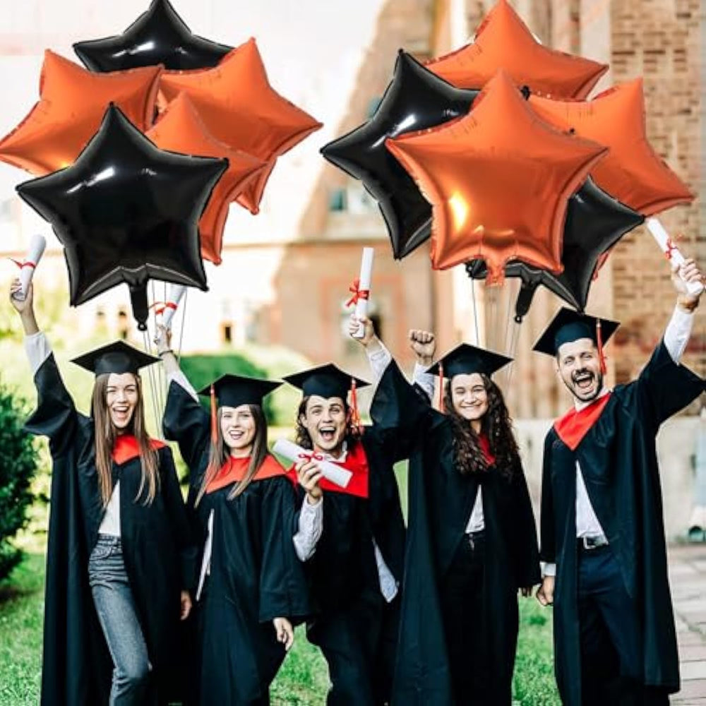 This Halloween balloon set includes 12 foil balloons—6 black stars and 6 orange stars—along with a straw and ribbon for easy inflation. Made from premium, ultra-shiny aluminum foil, these balloons are durable, self-sealing, and maintain their shape without leaking air. The vibrant foil colors create a striking visual effect, perfect for adding a festive touch to any celebration. Easy to set up, you can hang them indoors or outdoors on walls, windows, ceilings, or backyards using the included ribbon or tape.