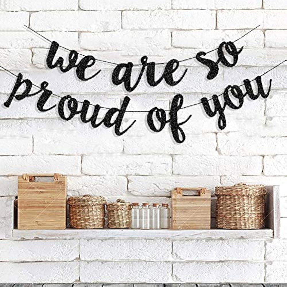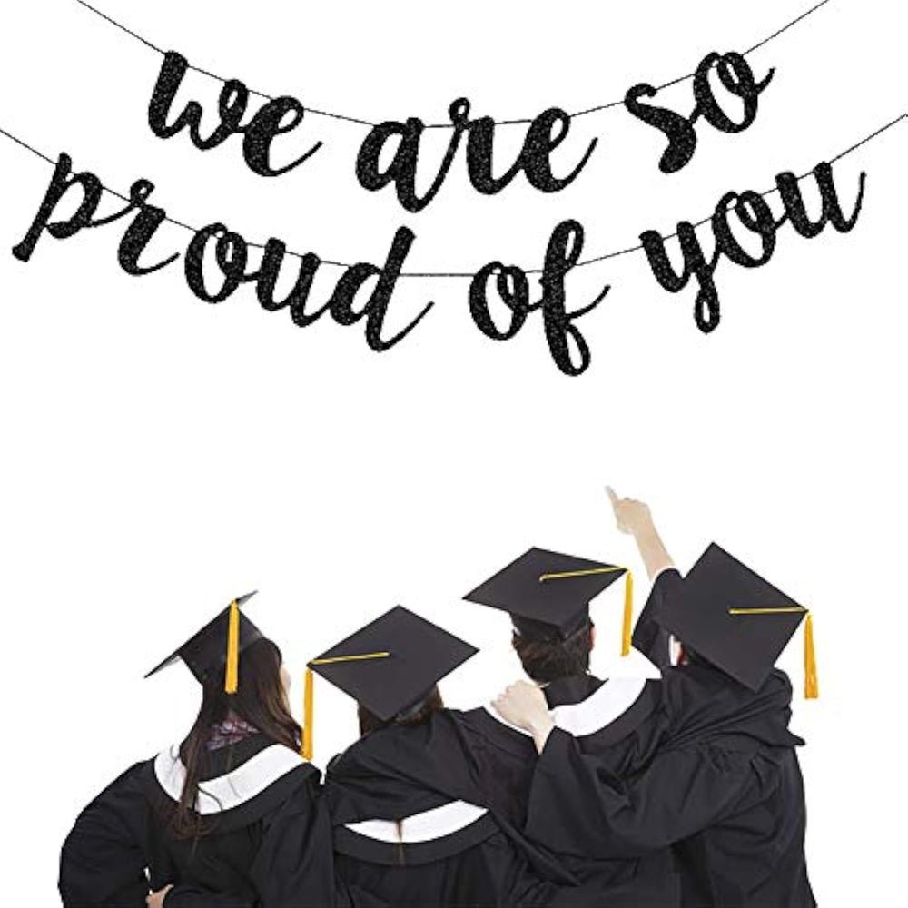 | Paper | | Easy To Assemble: This We Are So Proud Of You Banner Garlands Need Some Easy Diy, Just Need Place Gold Ribbon Through The Hole At The Top Of Each Letter Card Stock, Suit For Kindergarten, Senior School, College, Nursing, Doctor Congrats Graduation Party Decoration, Birthday, Wedding, Indoor Or Outdoor Home Decor. | | Package Included: 1Pcs Black Glittery We Are So Proud Of You Graduation Banner, Great For 2025 Graduation Party Supplies Decoration, And It Come With 2 Separate Parts: One Part "We Are So", One Parts" Proud Of You", Each On Part With Approx 9.84 Feet / 3Meters Rope. | | Size: Our Grad Banners Each Letter Length Approx Is 7.87" X 6.7" / 20X17Cm, And This Size Is Great Car Decorations For Graduation 2025, Detail Size Please Refer The Pictures. | | Wide Application: This Gold Glitter Graduation Banners Is Perfect For Hanging From Branches And Ceilings, Mental Fireplace, Window, Wall, Yards, Or Open Against A Wall, Hanging Up Dessert Tables, Backdrops, And The Overall Party Decorations, Also A Perfect Photo Background For Your Photos. | | Satisfied : 100 % No-Risk ! We Offer 60Days Free Replacement Or Refund. Any Quality Problem Or Unsatisfied With Our Product, Please