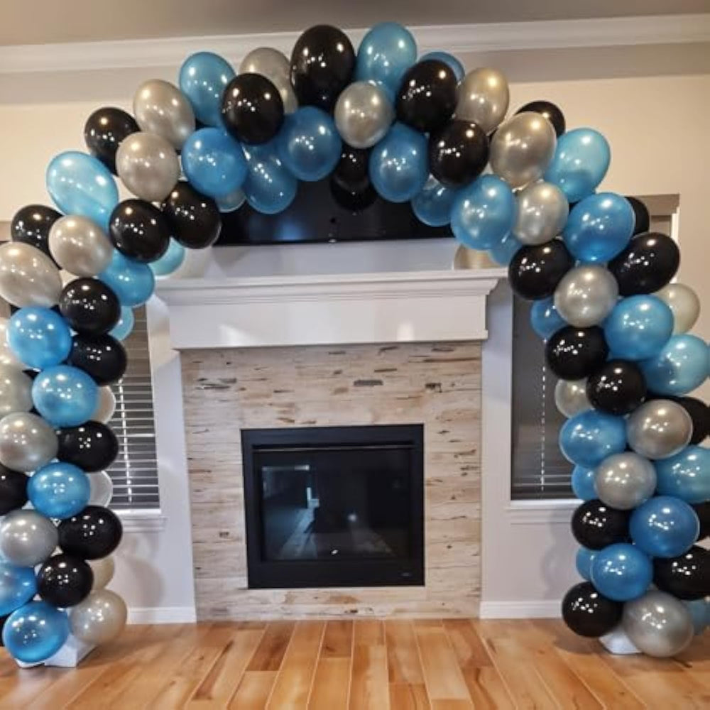 | ?Birthday Party Balloons?This 30Pcs Set Offers A Striking Mix Of 12-Inch Latex Balloons In Various Shades: 8Pcs Black Balloons, 7Pcs Dark Blue Balloons, 7Pcs Pearl Light Blue Balloons, 8Pcs Pearl Silver Balloons, And 1 Roll Of Light Blue Ribbon. Suitable For Creating Eye-Catching Blue And Silver Birthday Decorations, Black And Blue Party Themes, Or Stylish Backdrops For Baby Showers And Graduations | | ?Multiple Occasions &Amp; Visual Impact?Featuring A Carefully Selected Palette Of Dark Blue, Silver, And Black Tones, These Balloons Bring Style And Energy To Your Blue Party Decorations. Whether It’S A Black And Blue Birthday Party, Baby Shower, Or Graduation Event, The Combination Of Shades Blends Beautifully Into Modern And Bold Color Themes. These Balloons Work Great For Building Stylish Balloon Bouquets, Festive Garlands, Or Themed Backdrops That Match Your Overall Party Vision | | ?Great For Any Occasion?These Balloons Are Great For Boy Birthdays, Blue And Silver Parties, Baby Showers,Black And Blue Graduation Celebrations, Or Any Special Event. They Can Be Used As A Standout Centerpiece Or Paired With Other Party Supplies To Create A Lively And Festive Atmosphere. Whether You'Re Celebrating A Child'S Birthday, Hosting A Baby Shower, Or Organizing A Fun Kids' Event, These Vibrant Balloons Will Enhance The Occasion And Bring Joy To Guests Of All Ages | | ?Tips For Use?Filling Balloons With Helium Allows Them To Float For Hours, Creating Floating Balloon Displays Or Ceiling Decorations For Birthday Celebrations. Air Inflation Is Suitable For Wall Or Table Decorations. Avoid Over-Inflating To Prevent Popping. Use The Included Light Blue Ribbon To Tie And Finish Your Arrangements For A Clean Look, And Pair Balloons With Other Decorative Elements Like Streamers Or Banners For Added Style | | ?