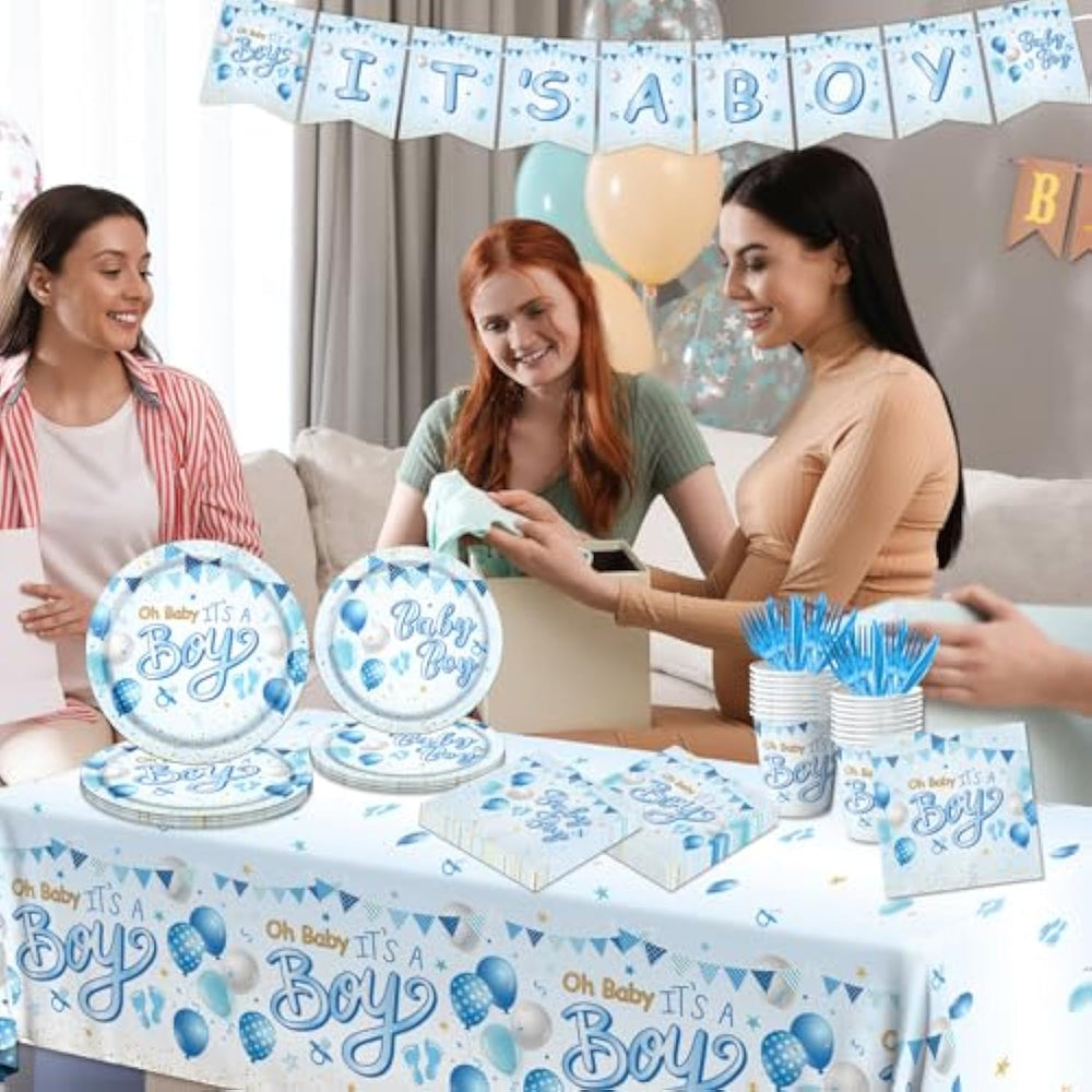| ?Boy Baby Shower Decorations?You Will Receive 142Pcs Blue Baby Shower Decorations For Boy Tableware Set Include: 1Pc It'S A Boy Banner, 1Pc Baby Boy Tablecloth, 40Pcs Paper Plates (2 Size), 40Pcs Napkins,20Pcs Cups,20Pcs Knives And Forks, Baby Shower Decorations For Boy Will Meet Your Party Needs. | | ?It'S A Boy Baby Shower Party Tableware?Our Baby Boy Shower Plates And Napkins Are Made Of High Quality Material. The Its A Boy Tablecloth Is Made Of Plastic, Easy Use And Storage, These Its A Boy Decorations Tableware Set Add Fun And Sparkle To Your Baby Shower Party. | | ?Oh Baby Boy Shower Design?Our It'S A Boy Baby Shower Party Supplies With Popular Baby Shower Elements,Such As Stars,Balloons,Baby Footprints,Floral,And Also Prints "Oh Baby It'S A Boy"Letters, Will Brings Vitality And Joy To Your Boy Baby Shower Party. | | ?Easy To Use?Our Baby Boy Baby Shower Decorations Set Are Suitable For Both Indoor And Outdoor Use. After The Party, Just Throw It Away,Which Save You Much Time In Cleaning, Make Your Party More Attractive. | | ?It'S A Boy Baby Shower Party Supplies?These Baby Boy Shower Decorations Dinnerware Set Are Widely Used For Multiple Occasion, Such As Baby Shower, Birthday Party,Gender Reveal,Baby Boy Theme Party, Also Can Fit Well With Your Other Baby Boy Party Decorations Such As Its A Boy Tablecloth, It'S A Boy Banner, It'S A Boy Baby Shower Backdrop. | |