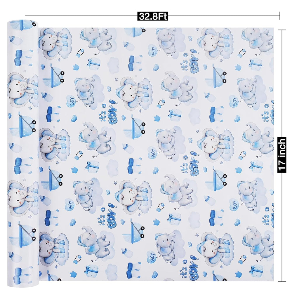 | Cute Baby Shower Design: The Baby Boy Wrapping Paper Features Charming Blue Elephant And Cloud Patterns, Making It Perfect For Any Baby Shower Celebration Or Birthday Party For Boys Suitable Size:Each Roll Of Wrapping Paper Is 17 Inches Wide And 32.8 Feet Long, And Can Wrap Many Gifts,Making It Ideal For Wrapping Multiple Smaller Presents, Ensuring Every Gift Stands Out Premium Materials: Made From Premium Paper, This Birthay Gift Wrap Paper Is Smooth, Thick And Not Easy To Damage, And It Is Easy To Fold And Use To Meet Your Gift Packaging Needs For Any Occasion Occasions Of Use:This Unique Wrapping Paper Is Perfect For Wrapping Birthday Gifts And Can Also Be Used For Baby Showers, Birthday Parties, Weddings, And Any Occasion Where You Want To Use It For. Perfect For Any Celebration: The Vibrant Design Makes This Wrapping Paper A Great Choice For Both Boys And Girls. Whether It'S A Birthday, Family Gathering, Anniversary, Baby Shower Or Any Festive Occasion, It Adds A Fun, Joyful Touch To Every Celebration