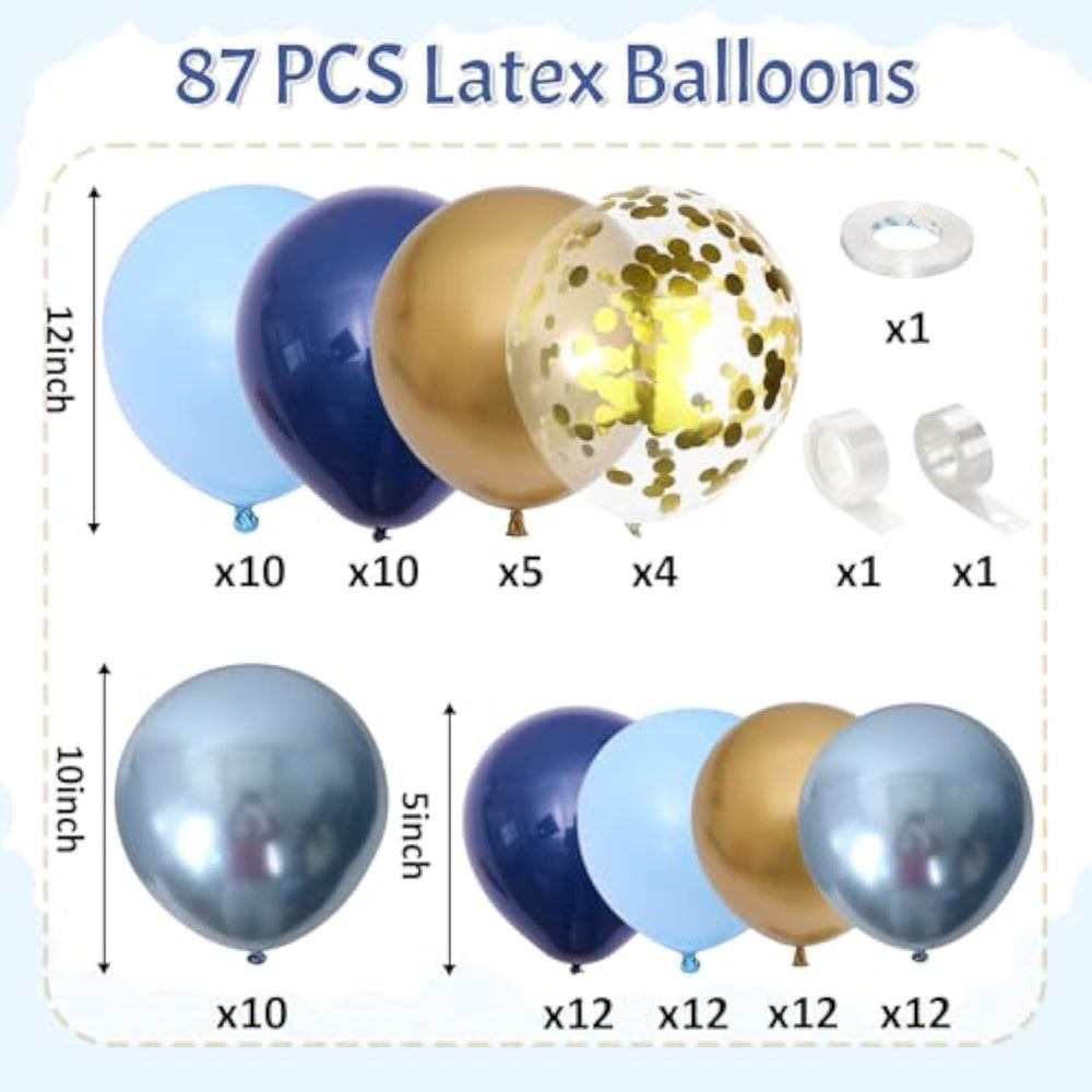 | Package Includes: Our Balloon Garland Arch Features A Stunning Combination Of 29Pcs 12" Balloons, 10Pcs 10" Balloons, 48Pcs 5" Balloons And Glue Dots, Balloon Chain And Ribbon To Help You Create Stunning, Reusable Decorations | | For Any Event: Featuring A Impressive Color Palette Of Royal Blue Pastel Blue Metallic Gold Blue Balloons And Gold Confetti Balloon, These Balloons Garland Kit Are Ideal For Creating A Festive Atmosphere At Father'S Day, Bridal Shower, Engagement | | Easy Setup: With Included Accessories Like A Garland Strip And Glue Dots, Creating Balloon Arches, Bouquets, Or Garlands Is Quick And Hassle-Free. Inflate With Air Or Helium For A Professional-Looking Decoration With Minimal Effort | | Safe To Use: Made From Non-Toxic Latex, These Balloons Are Safe For Use Around Children. The Thicker Latex Material Helps Prevent Popping, So They Maintain Their Shape And Appearance Throughout Your Event | | Tips: Balloons Should Always Be Used Under Adult Supervision To Ensure Children'S Safety. To Keep The Balloons Intact, Avoid Over-Inflating Them And Protect Them From Direct Sunlight Or Sharp Objects | |