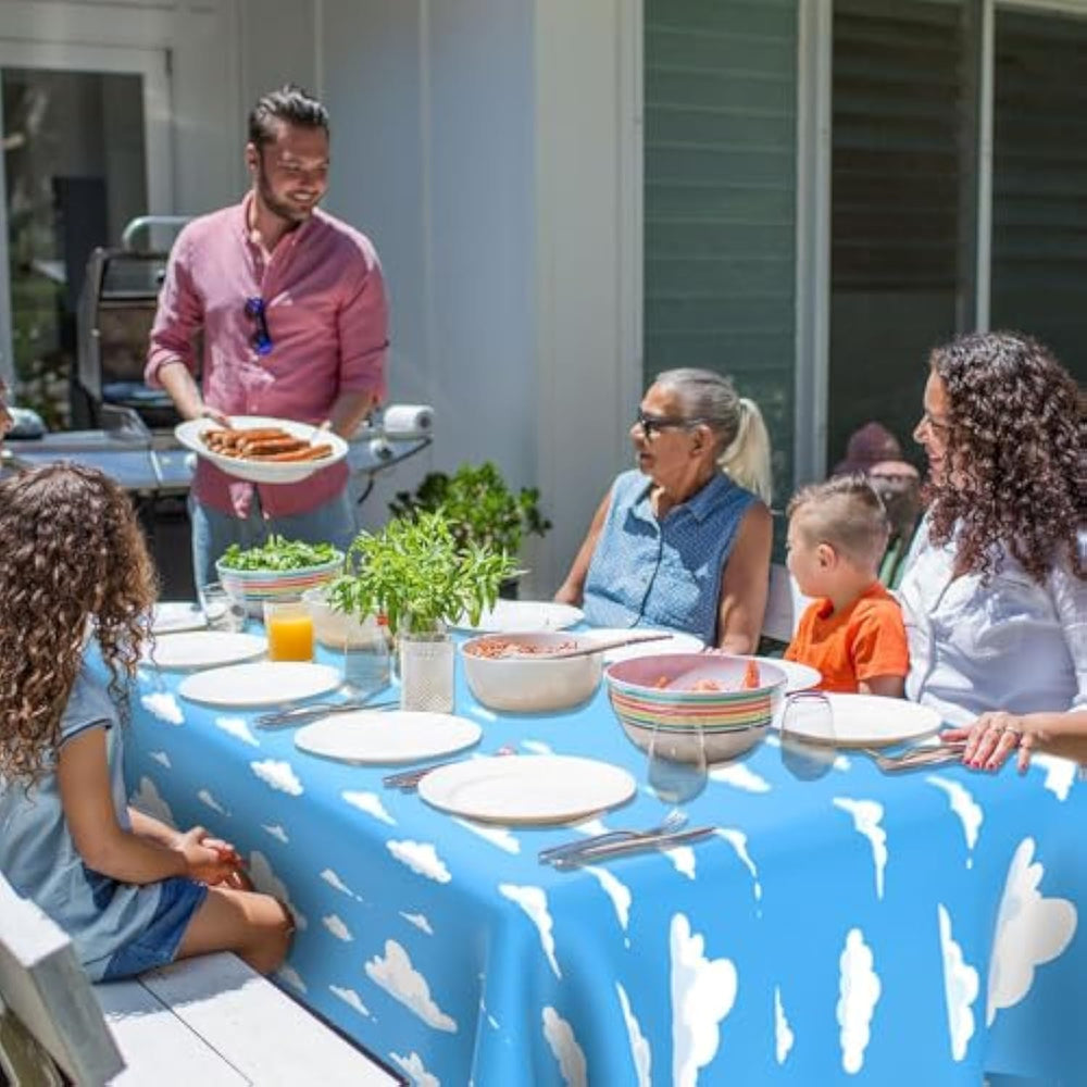 | Package Includes: You Will Get 2 Pieces Blue Sky White Cloud Tablecloths, Printed With Exquisite Patterns, Adorable White Cloud Patterns To Increase More Fun For Kids Birthday Party, Great For Birthday Baby Shower Themed Party Decorations | | High Quality Materials: Our Cartoon Story Tablecloth For Parties Are Made Of High Quality, Thick, Spill-Proof And Waterproof Disposable Plastic, Is Safe And Non-Toxic,Water And Oil Repellent Protects Your Table From Stains Caused By Food, Drinks, Etc. Keep Your Table Fully Protected At All Times | | Large Size: This Pblue Sky White Cloud Table Cover All Measure About 54X108Inch/137X 274Cm, Big Large Can Enough To Cover The Most Rectangular Table Or Can Be Cut To Better Fitting Smaller-Sized Tables, Fits Most Rectangles 8-10 Seat Tables Which Is Large Enough For Girls And Boys Birthday Party ,Making The Party Impressive And Memorable | | Save Your Time: These Blue Sky White Cloud Table Cloth Is Very Convenient To Use, Just Open And Set Them On The Table, Can Protect Your Tables From Spills And Scratches You Can Roll Christmas Tablecloth Disposable Up Throw Away After Party, Save Your More Time To Clean, You Can Enjoy Happy Time During Party With Your Family And Friends | | Wide Applications: These Blue Sky White Cloud Party Tablecloth Is Very Suitable For Birthday Parties, Baby Showers Parties, Cartoon Parties, Doggy-Themed Parties, Kitten-Themed Parties, Home Event Decoration,Camping Cloth, School Event, Yard Decoration And Family Parties, And Suitable For Indoor And Outdoor Use. Using These Plastic Table Covers Will Make Your Parties More Interesting And Attractive.Absolutely A Great Table Decor For Your Birthday Themed Parties | |