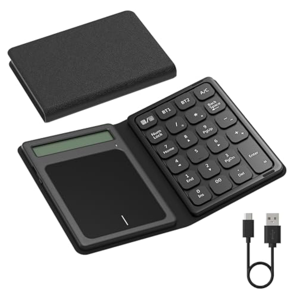 | 3-In-1 Bluetooth Number Pad - Folding Numeric Keypad, Calculator And Touchpad 3 In 1, Allowing You To Work More Smoothly And Improve Productivity In The Office And On The Go, Perfect For Financial Accountants, Students, Office Specialists, And Spreadsheet Experts. | | Connectivity Across 2 Devices - Equipped With The Latest Bluetooth 5.1, The Connection Stability And Communication Distance Are Improved Compared To Traditional Standards. It Can Be Paired With Two Devices At The Same Time And Switch Easily. Compatible With Windows, Mac Os, Ios, Google Or Android Devices, Enhancing Your Workflow Across Your I Pad, Phone, Tablet, Computer Or Laptop Seamlessly. | | Type-C Charging Energy-Saving Design - Equipped With A Type-C Charging Port, You Can Use A Mobile Power Bank Or Computer To Charge Numpad Anytime, Anywhere. Built-In 140 Mah Battery Can Last Up To 75 Hours (No Blacklight) Or Standby 250 Hours After A 1.4 Hour Charge, And Automati
