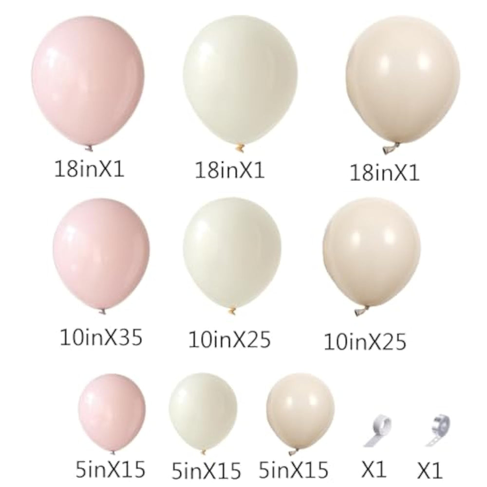 | Package Include: 133 Pcs Pink And White Balloons In Total. 51 Pcs Dusty Pink Balloons, 41 Pcs Ivory White Balloons, 41 Pcs White Sand Balloons, 1 Pcs Balloon Arch Strip Tape, 1 Roll Of 100 Dot Glue | | Premium Quality: Our Dusty Pink White Sand Balloons Are Made Of Natural Latex, Non-Toxic. All Materials Are Of High Quality And Good Safety. The Balloons Are Resilient And Long-Lasting,Ensuring The Arch Remains Vibrant Throughout The Event. Please Be Careful Not To Overinflate The Balloons, Or They Will Be Pop And Burst Easily | | Widely Applications: The Boho Neutural Pink Blush White Balloon Arch Garland Is Perfect For Birthday Party Decorations, Baby Shower Party, Bridal Shower Supplies, Wedding Party Decor, Baby In Bloom Party Favors, Spring Decoratioons, Fairy Wonderland Party, First Communion Party, Mama To Bee Themed Party, We Can Barly Wait Party. It Is Ideal For You To Throw A Big Party And Wonderful Background Props For Photo Shoots Indoor Or Outdoor | | Easy To Assemble: You Could Diy Any Style You Like. We Offer The Tools Which Can Help You To Make Balloon Arches More Easily. Insert The Balloon Knot Into The Hole Of The Balloon Chain Strip. Then Use The Dot Glue To Fix The Balloons In Place. It Will Be A Funny Craft To Diy With Your Family. Just Enjoy It | | Tips: Make Sure To Inflate The Balloons To The Appropriate Size For The Design You Have In Mind. Assemble The Garland Close To The Event Time And In A Suitable Location. Balloons Can Be Affected By Temperature Changes Or Direct Sunlight, Which Might Cause Them To Deflate Or Pop. If Possible, Set Up Indoors Or In A Shaded Area To Keep The Garland Looking Its Best | |