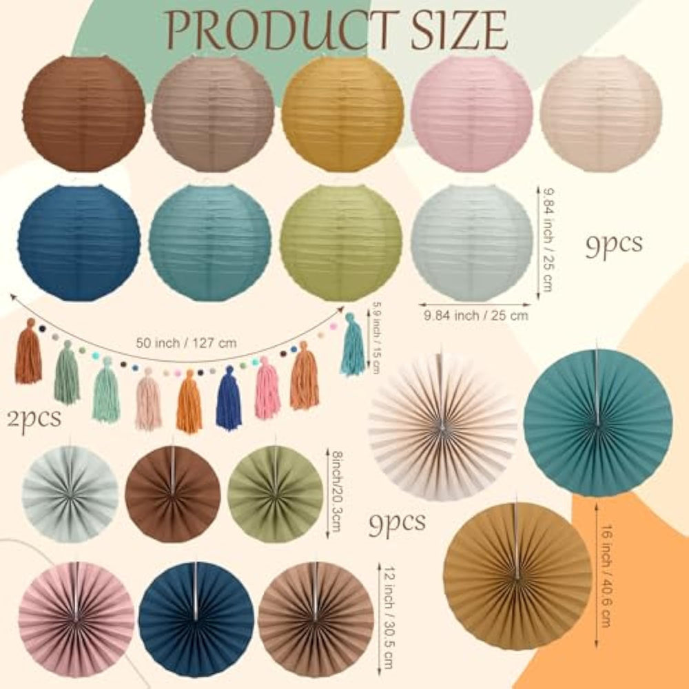 | Party Decoration Set: Our Hanging Paper Fans Set Are Designed In Boho Style, Which Includes 9 Pcs Of Paper Lanterns, 2 Pcs Of Banner Garlands, And 9 Pcs Of Paper Fans In 3 Different Sizes, You Can Create A Variety Of Designs According To Your Taste And Needs | | Good Color Combination: Our Classroom Paper Fans Feature Elegant Boho Color. The Hues Of Hanging Fans And Banners Are Carefully Coordinated, Creating A Harmonious And Rustic Ambiance. This Design Of Boho Hanging Paper Fans Set Is Particularly Well-Suited For Decorating Classrooms, Farmhouses, And Homes, Infusing Spaces With Warm Atmosphere | | Appropriate Size Information: Our Boho Party Decorations Are Created With The Mission To Leave Everyone With Beautiful Memories! The Hanging Paper Fans Are Available In 3 Sizes, With Diameters Measuring 16 Inch / 40.6 Cm, 12 Inch / 30.5 Cm, And 8 Inch / 20.3 Cm, And The Paper Lanterns Measure About 9.84 Inch / 25 Cm, While The Banner Garland Is 50 Inch / 127 Cm, With 5.9 Inch / 15 Cm Tassels And 0.59 Inch / 1.5 Cm Small Pompoms Hanging From It | | Quality Material And Easy To Install: The Boho Paper Lanterns Fans Are Made Of Paper And Fabric Materials, Light Weight, Not Easy To Tear, Can Be Applied For A Long Time After Decoration. And The Decorative Tassel Garlands Are Intricately Woven From Quality, Soft Cotton Rope. These Boho Hanging Paper Fans Are Also Easy To Hang And Install, You Just Need To Take Them Out, Then Unfold To Decorate Whatever You Want | | Wide Applications: Whether It'S A Soft Decoration Or A Vibrant Arrangement, These First Day Of School Party Decorations Have Something To Suit Your Needs, Use Them To Create A Comprehensive Themed Display For Parties, First Day Of School Events Or Classroom Decorations, Suitable For Birthday Party, Boho Themed Parties, Classroom Bulletin Board Decor, School Parties, Back To School Parties, Baby Shower, Etc | |