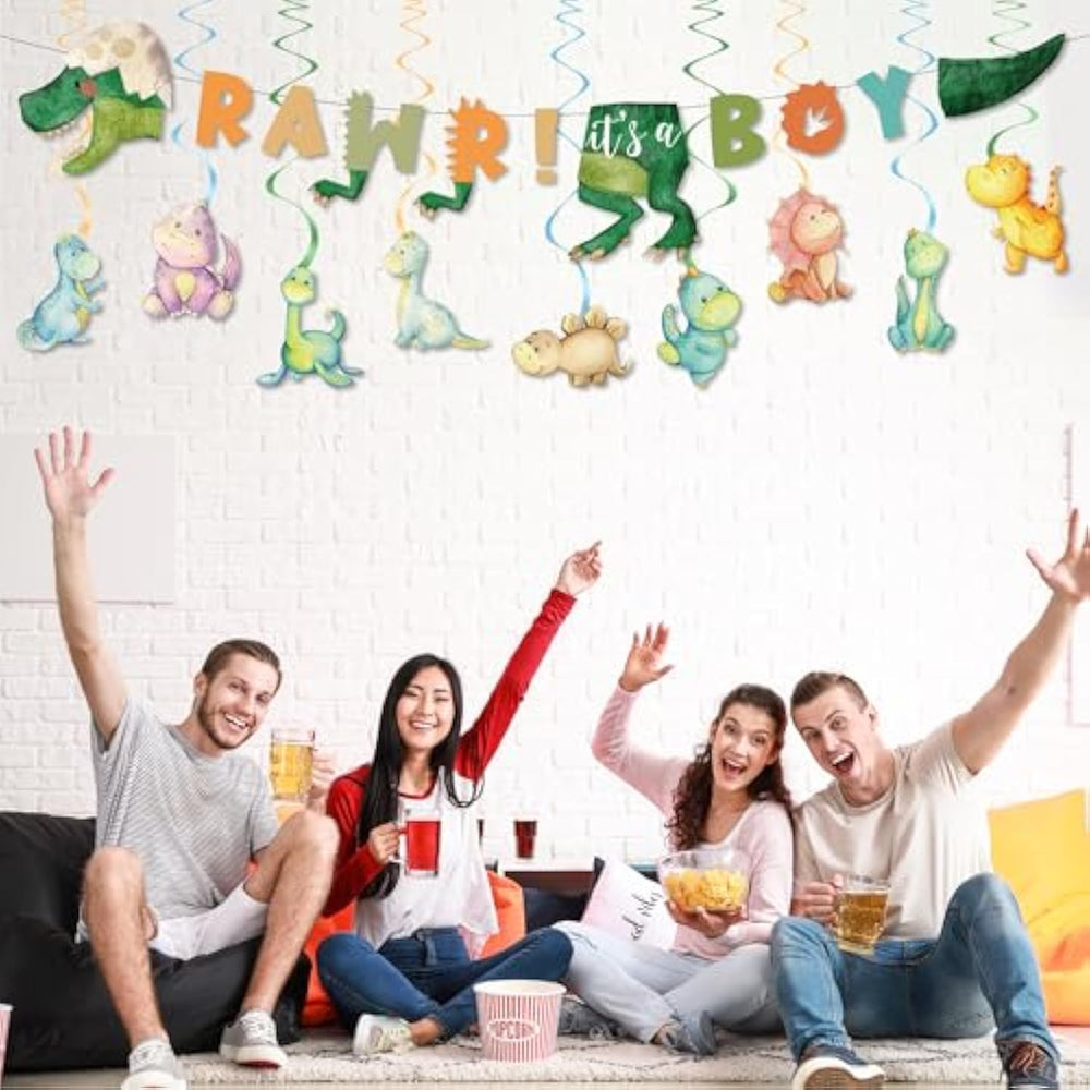 | ?Dino Baby Shower Theme?Celebrate Your Little One On The Way With This Cute Dinosaur Baby Shower Banner! Designed With Friendly Dinos, Jungle Leaves, And The Phrase “Rawr It'S A Boy,” It’S A Nice Touch For A Boy’S Baby Shower | | ?Easy Installation?No Assembly Needed! This Dino Baby Shower Banner And Baby Dinosaur Party Swirls Set Make Setup Quick And Easy—Just Hang It On A Wall, Above The Gift Table, Or As A Backdrop For Your Photos | | ?Reusable?Made With Nice Quality Cardstock And Vivid Printing, This Dinosaur Party Decorations Banner And Party Hanging Set Is Built To Last Through Your Dino Bash—And Can Even Be Reused For Future Parties Or Playroom Decor | | ?Nice For Boys Baby Shower?With Its Cute Dinosaur Theme, This Banner Works Beautifully For Boys' Birthday Parties, Dinosaur-Themed Events, Or Even Classroom Celebrations | | ?Premium Quality?Crafted From Premium Materials, This Dinosaur Baby Boy Party Banner And Dino Party Swirls Set Is Designed To Withstand The Excitement Of Your Baby Shower. You Can Count On Them To Stay In Great Shape For Photos And Lasting Memories | |