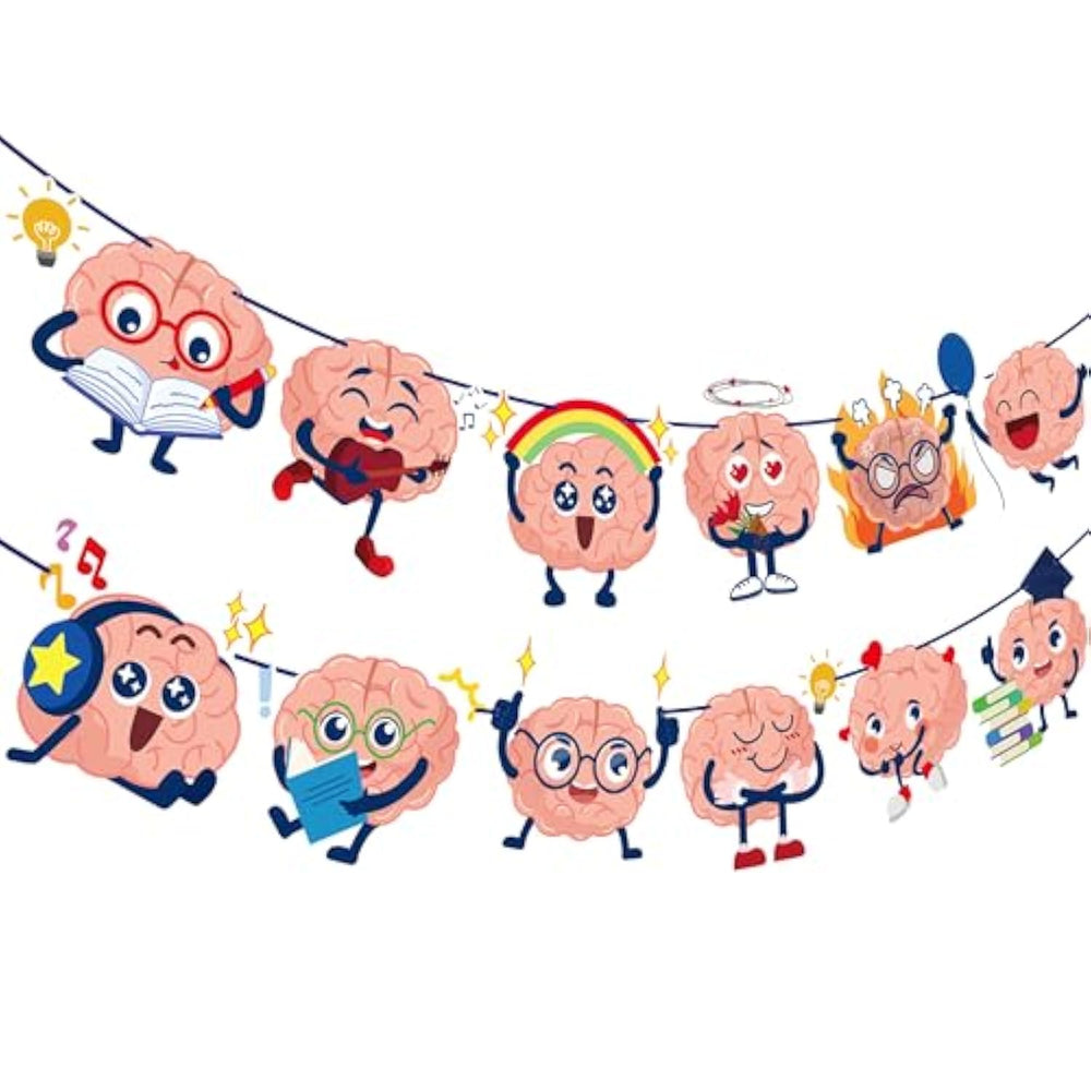| Brain Party Banners: Ready-To-Hang Decorative Brain-Themed Banner That Requires No Diy Assembly, Saving You Time And Effort | | Brain Party Decorations: Pre-Strung Design With Smaller Punch Holes Keeps Letters Securely In Place Without Sliding On The Strand | | Brain Birthday Party Decorations: High-Quality Materials Allow For Multiple Uses, Making It Perfect For Repeated Celebrations And Events | | Funny Brain Banners: Adorable Cartoon Brain Characters In Various Activities Create A Fun And Educational Atmosphere | | Brain Themed Party Supplies: Includes 2 Coordinating Banners That Can Be Hung Together Or Separately For Versatile Party Decoration Options | |