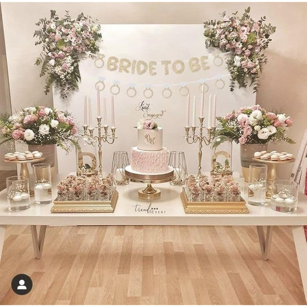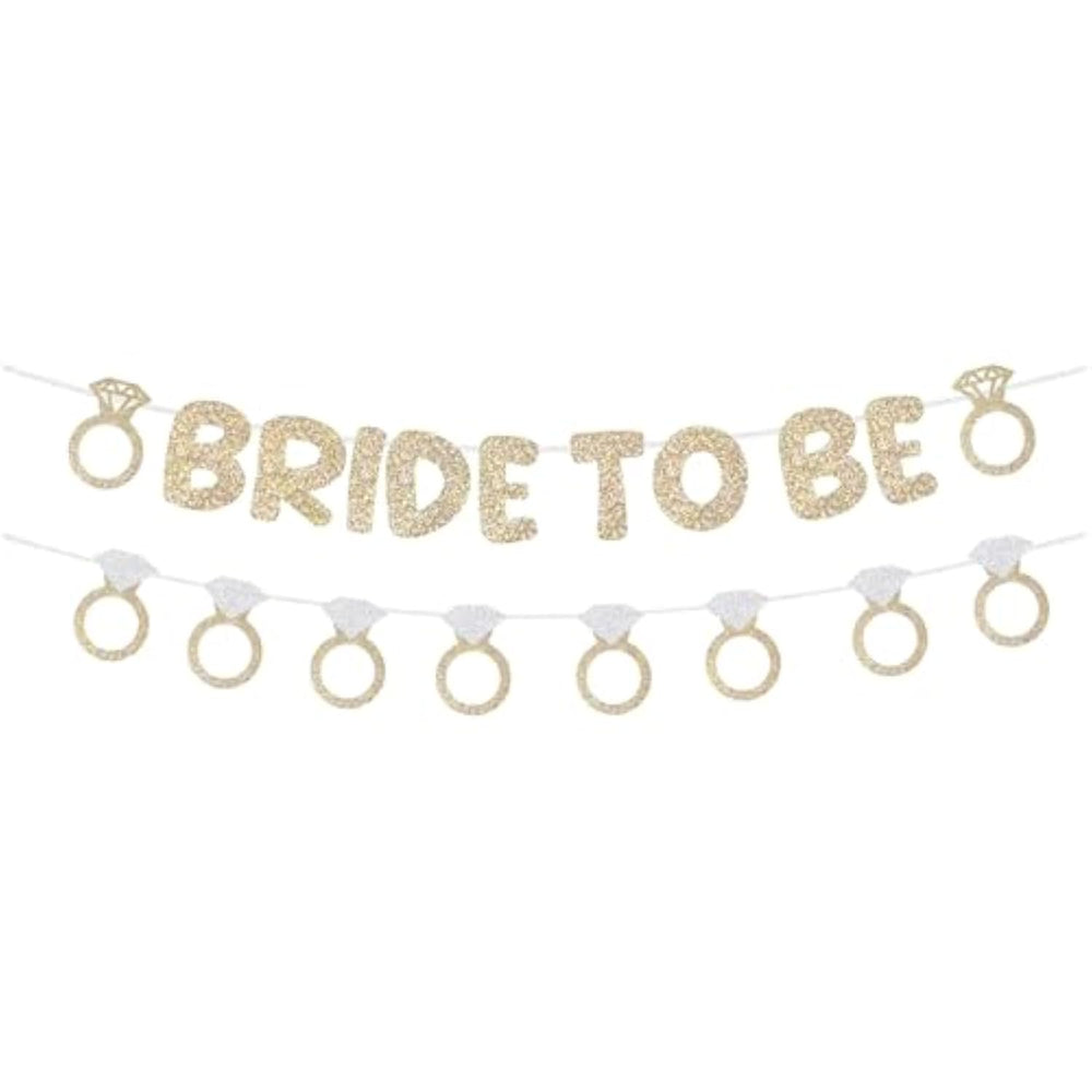 | Pre-Strung Bride To Be Banner And Diamond Ring Banner: These Party Banners Are Pre-Strung, Save Your Time. | | Bride To Be Banner And Diamond Ring Banner Garland: You Will Receive 1 Pc Bride To Be Banner And 1 Pc Diamond Ring Banner. | | Excellent Quality Bridal Shower Decorations Banners Are Made Of Quality Card That Can Keep A Good Shape For A Long Time And Be Reused For Many Party Occasions. | | Adorable Bachelorette Party Decoration: The Cute Champagne Gold/Silver Glitter Banners Will Be A Great Hit In Your Bridal Shower, Bachelorette Party Etc. | | Multiple Applications: You Can Hang The Bride To Be Sign /Ring Banner On The Fireplaces, Wall, Ceiling, Or Anywhere As You Like, Which Will Be A Awesome Photo Backdrop For A Bachelorette Party, Engagement Party, Or Other Bridal Related Events. | |