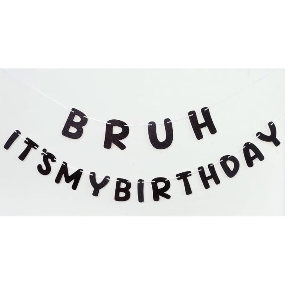 | Funny Trendy Design: Features The Hilarious Phrase "Bruh It'S My Birthday" In Bold Lettering, Perfect For Adding A Cool And Humorous Vibe To Any Teen Boy’S Birthday Party. | | Black Glitter Accents: Made With Eye-Catching Black Glitter Details, This Banner Adds A Stylish And Festive Touch To Birthday Decorations, Making It Stand Out At Any Celebration. | | Perfect For Preteens Teens: Ideal For Boys Celebrating Their 12Th, 13Th, 14Th, Or 15Th Birthday, This Banner Fits Right In With A Teen’S Fun And Laid-Back Party Theme. | | High-Quality Party Decor: Durable And Well-Crafted, This Banner Is Designed To Enhance Birthday Setups, Whether Hung On Walls, Behind Cakes, Or As A Photo Backdrop. | | Great For Themed Parties: Works Well With Black, Gold, Or Dark-Themed Birthday Decorations, Complementing Other Party Supplies Like Balloons, Tableware, And Centerpieces. | |