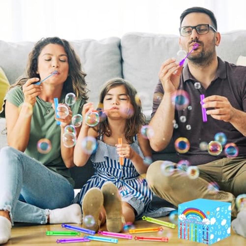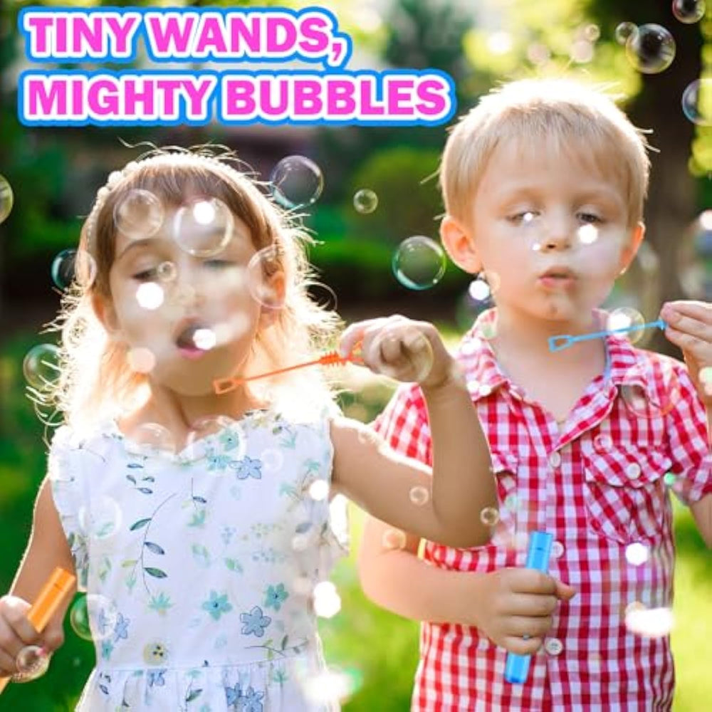 | 100 - Pack Mini Bubble Wands – Features Eye-Catching Star-Shaped Handles In 8 Vibrant Neon Rainbow Colors, Adding A Playful Sparkle To Every Bubble Blast. | | Pocket-Sized Bubble Fun – Each Individual Bubble Stick Measures 4.2 Inches Long, Perfectly Sized For Little Hands. Great For On-The-Go Play Anytime! | | Party Favors Bulk Pack – A Must-Have For Halloween Birthday Goody Bags, Pinatas, Non Candy Treats, Handouts And Any Holiday Party Stuff. | | Bulk Toys For Kids Prizes – Perfect Classroom Student Rewards, Carnival Game Prizes, Event Giveaways, Wedding Favors And Parade Throws. | | Outdoor Games Activities For Toddlers - Awesome For Yard Backyard Play, Camping Trips Essentials, And Perfect For Fun-Filled Park Days With Kids. | |