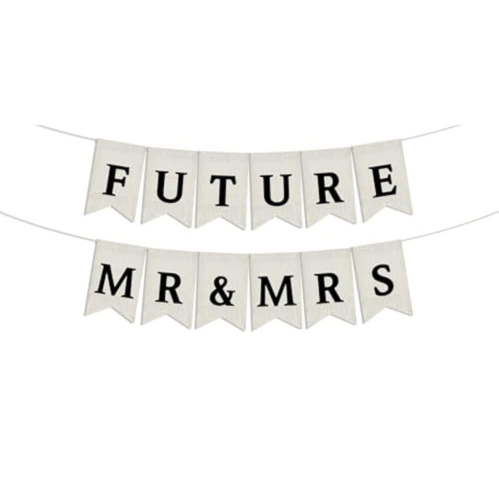 | ? "Future Mr Mrs" Banner - Wedding Shower/Engagement Party Decorations, Mr Mrs Sign For Rustic Wedding Party Decorations | | ?Our Banner Made With Premium Jute Burlap | | ??Letters Vary From 6 - 8 Inches Tall | | ??? Diy: The Banner Comes With Pre-Cut Letters And You Can Just Unpack It And Hang It Up To Decorate Your Wedding Party! | | ??Perfect For Bridal Shower Engagement Party. | |