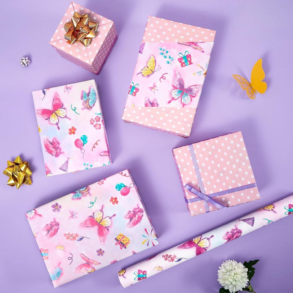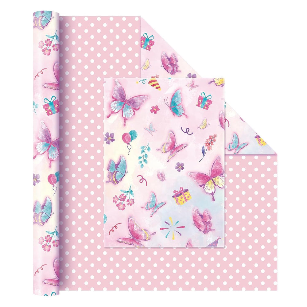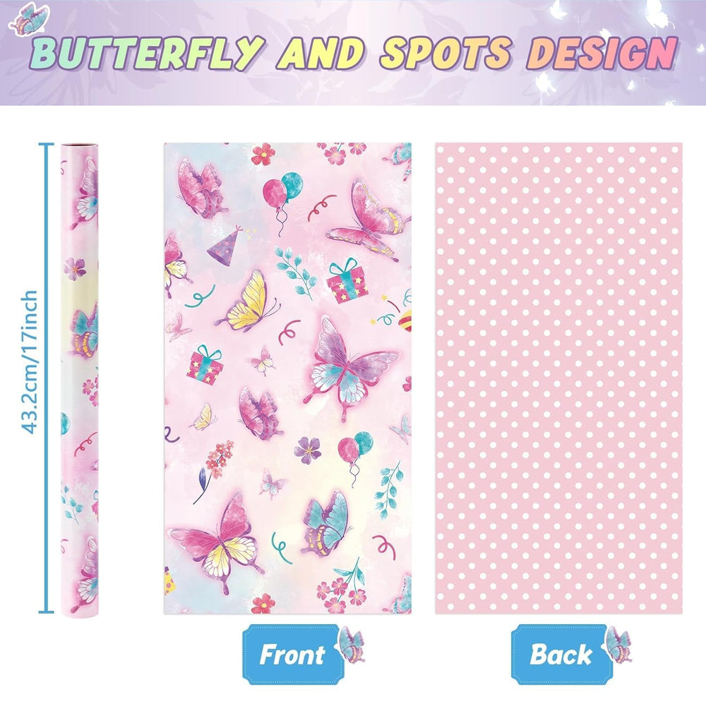 | ?Elegant Butterfly Design? - Our Girls Wrapping Paper Roll Features Colorful Butterfly, Flowers And Gifts Elements On One Side And Pink Polka Dots On The Other. The Double-Sided Design Brings Variety And Fun To Your Girl'S Surprising Gift ?Premium Quality? - Made From High-Quality Paper, This Butterfly Wrapping Paper Is Sturdy And Durable, Realistic Printing To Ensure Your Gifts Are Securely Wrapped And Beautifully Presented. Say Goodbye To Rips Or Tears When Gift Wrapping ?Perfect Size? - Each Roll Of Pink Wrapping Paper Measures 43.2 Cm Wide X 10 M Long. With Our Large Gift Wrap Roll, You Can Easily Cut And Design The Package As You Wish , Especially Suitable For Small And Medium-Sized Gifts ?No Creases? - The Pink Butterfly Gift Wrap Paper Comes In Roll And Will Not Crease, Making It Easy To Pack And Store. Item Comes With Shrink Wrap To Protect The Wrapper From Scratches And Reduce Dust ?Wide Application? - Perfect For Girls Parties, Kids' Birthday, Or Simply Adding A Spring Art Touch To Your Gifts, The Wrapping Paper Roll Is A Must-Have For The Gift Season. Whether You'Re Wrapping Gifts For Friends, Family, Or Colleagues, Our Butterfly Wrapping Paper Roll Is Ideal For All Your Gifting Needs