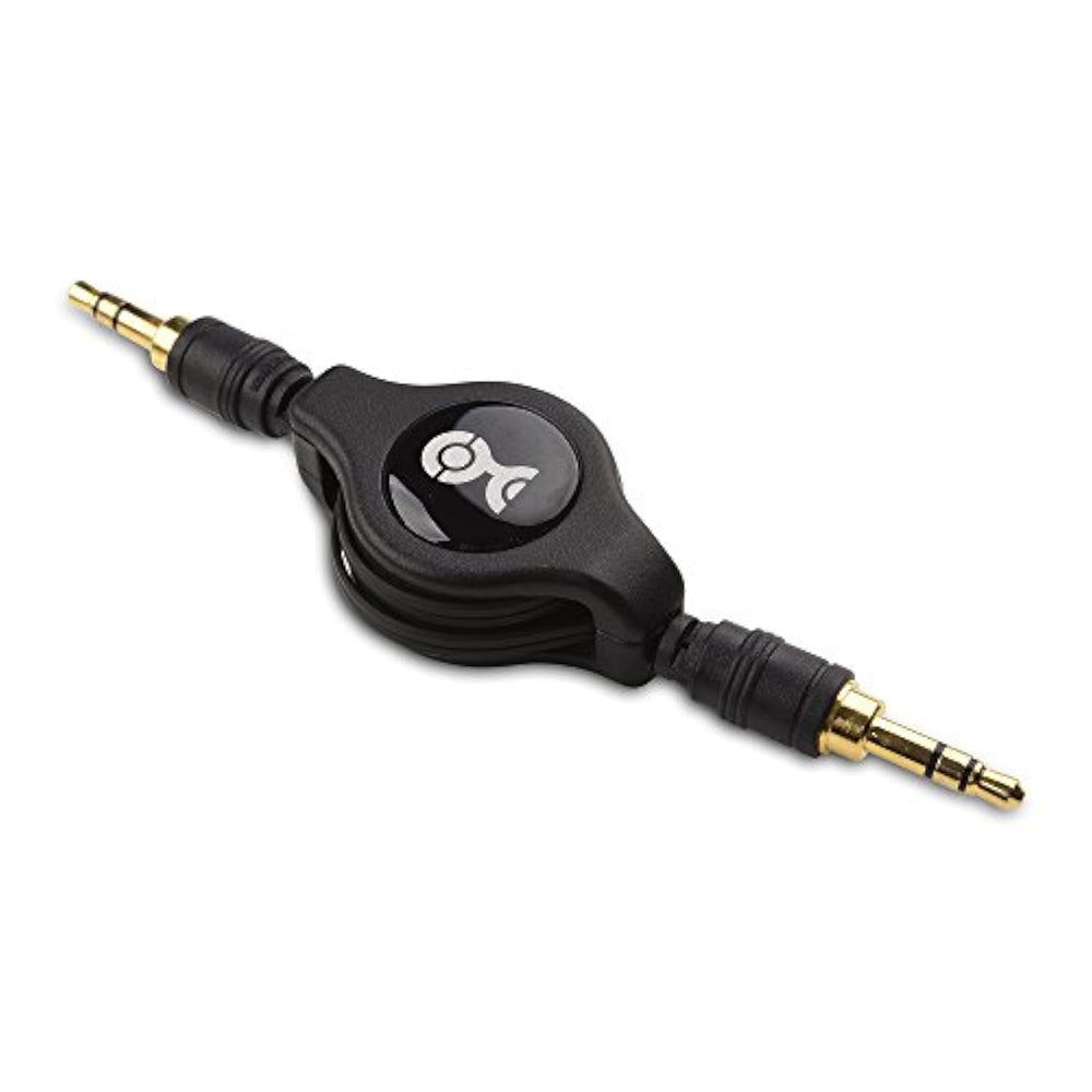| Versatile retractable cable connects the headset jack of an iPhone/iPad, MP3 Player, smartphone, computer or tablet to headphones, a car stereo, AV amplifier, or portable speakers with the common 3.5mm stereo mini-jack found on the most popular electro | | Clever ratchet design retractable audio cable for convenient storage when not in use and provides a tangle-free alternative to cable spaghetti in the car or the office; Simply pull on both ends of the headphone cable to extend up to 2 feet and pull again to fold up into a lightweight 2 inch package that weighs less an ounce | | Step down design of the retractable aux cord for car accommos smartphones even in a case for a seamless fit; Beveled connectors provide a snug and secure connection to your portable devices without causing strain on the 3.5mm aux port; Convenient 2 pack stereo cable provides a portable spare to keep in the car or store in a laptop bag | | Solid construction with corrosion resistant, gold-plated tips encased in sturdy headphone jack connectors with 360 degree easy-grip treads; Provides