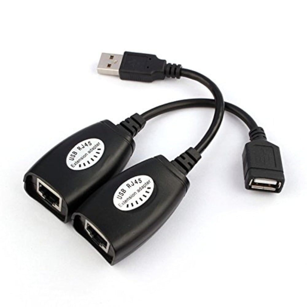 | Note: it isn't networking adapter, it can't work for any ethernet device, can't work for router, hub, switcher. | | This USB extension adapter allows you to connect your USB device to your computer at a distance of up to 150ft with the help of a Cat5/Cat5e/Cat6 patch cable. | | This adatper will allow you to have your USB cameras, printers, web cams, keyboard/mouse extensions or any other USB device exactly where you want it without having to move around your computer. | | Ideal for use with USB cameras, printers, web cams extensions, and any other USB device. | | USB Keyboard Mouse Over RJ45 CAT5E CAT6 Cable Extension Extender Cable Adapter | |