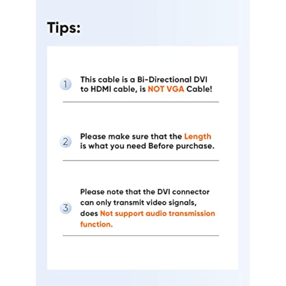 | Bi-directional Design- Can be connected from a computer with DVI port to a monitor, HDTV, or projector with HDMI port, or from a computer, Blu-ray player, TV box, or game console with HDMI port to a monitor with DVI port. A HDMI cable (sold separately) is required | | High Quality- 24K Gold-plated connectors resist corrosion and oxidation, ensures stable and secure connections. High grade PVC molding endows the adapter with excellent anti skid property, make the product wear-resistant and drop-resistant, suitable for long-term use | | Maximum Resolution- Supports resolution up to 1080p (Full HD). Audio must be transmitted separately | | Compact Size- The portable size and light weight is perfect for home and travel use, as well as for office monitors or projector connection | | Plug and Play: Easy to use,no extra drivers needed.Both DVI (24 + 1) and DVI (24 + 5) female ports are available,freely connect the adapter and enjoy the big screen | |