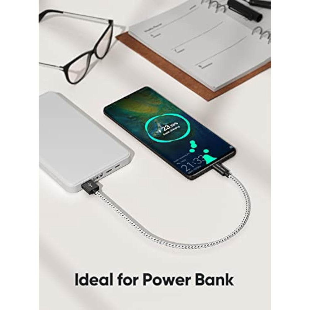 | Short Micro USB Cable 1FT: USB 2.0 Micro-B Cable is perfect lenght for charging Android and Windows smart phones, tablets MP3 players, digital cameras, camcorders more, connect TV stick from back TV USB port. Attention: When connect to a TV port with this cable, please make sure that the cable is plugged into a 5V/1A port, or a USB 3.0 port | | Fast Charge and Data Transfer: 24 AWG wire, charge up to 10% faster than most standard alternatives. Backwards compatible with USB 1.1. This short Micro USB Cable support sync data at 480 Mbps | | Durable Micro USB Cable: This Durable Micro USB cable with Aluminum case and cotton jacket Triple shielded wire (Twisted Pair shielded by Alum-Mylar, plus 100% Tin-copper braiding shielding) ensures no data loss during transmission | | Universal Compatibility: The most popular Android and Windows smart phones, tablets, and other devices with USB2.0 Micro-B port, such as the PS 4, Galaxy Tab, Galaxy S6, Galaxy Note 4, HTC One, Moto X, Xperia Z3, G Pro 2, G Flex2, Nexus 6, Nexus 7, Dragon Touch, Stream 7 Tablet, Kindle Reader, Raspberry Pi, Lonve Blue 16GB MP4,MP3 Player and Sansa Clip+ 8 GB MP3 Player, Roku, Chrome Cast, Smart Sticks | | What You Get: 1 x Micro USB Charging Cable. CableCreation provides item with 24 Months and technical support | |