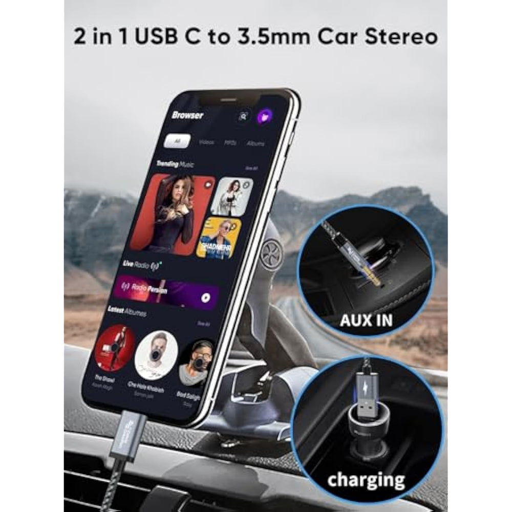 ?Usb C To Aux Cable With Charging?Connect Usb C Devices To 3.5Mm Audio Jacks And Realize Usb A To Usb C Charge Simultaneously. Convenient And Versatile For Audio And Car Stereo Enjoyment On The Go. Only One Cable Is Enough For Music And Charging. | | ?Pd 18W Usb A To Usb C Charge?This Aux Cable Supports Pd 18W Charge . The Usb Male Port Is Compatible With All Usb Chargers And Provides 18W Quick Charging For Phones And Tablets, No Worry About Power Drains While Playing Music When You Driving. | | ?Crystal Hifi Sound?This Usb C 3.5Mm Headphone Cable Uses The Newest Upgraded Realtek Dac Chip To Ensure Stable And No Loss Transmission Of An Audio Signal, Which Would Provide Flawless And Crystal Music Transmission And Hifi Sound Quality. | | ?Long Life Reliable Material?This Usb C 3.5Mm Audio Cable With Usb-A Charger Cord Is Equipped With A Premium Alloy Shell And 24K Gold-Plated Connectors, With Flexible Double Nylon Braided Cable. It Not Only Presents You With An Anti-Stretch And .