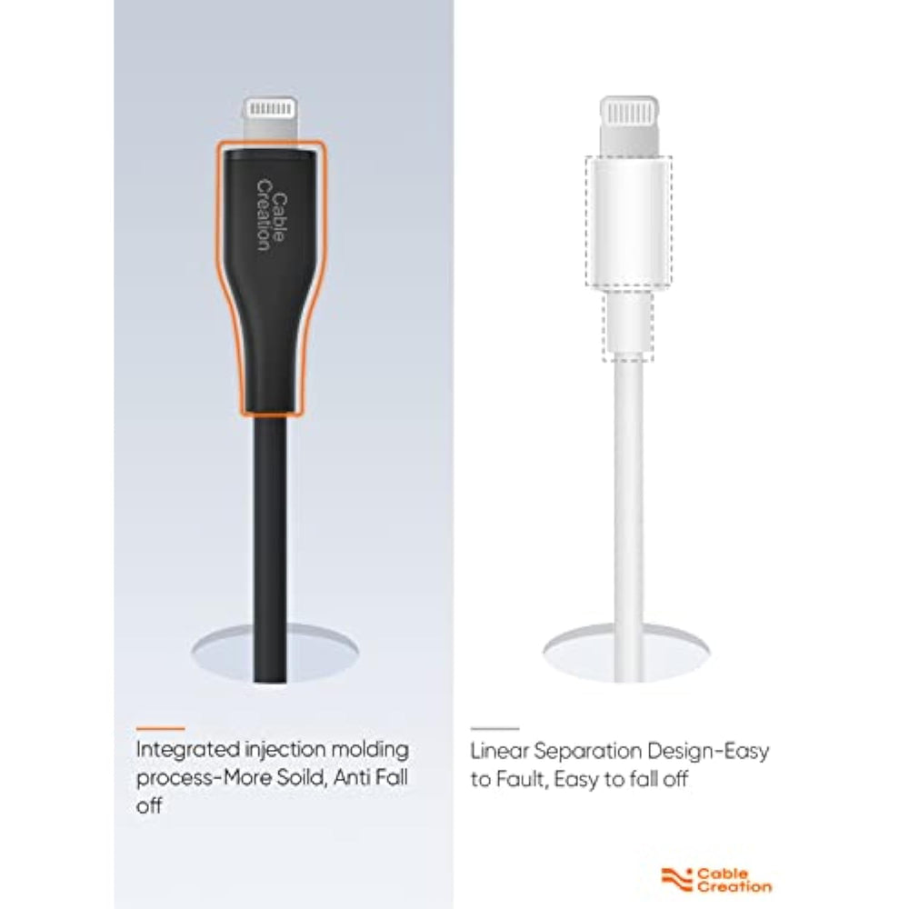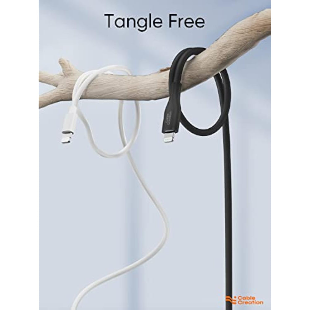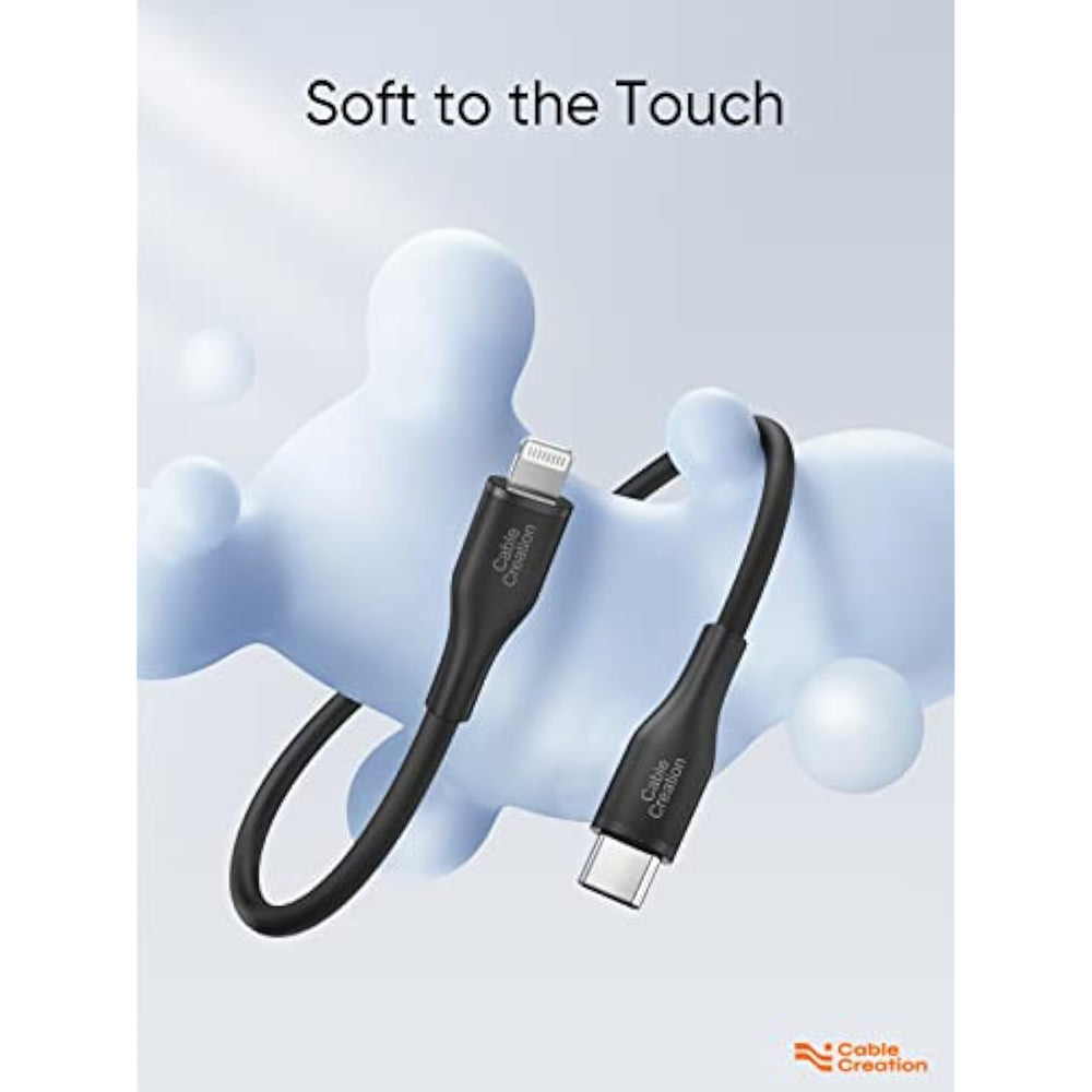 | Soft To the Touch: With unique silicone finish, CableCreation usb c to lightning cable is extremely soft and smooth to touch. Holding it in hand, you will feel like touching baby’s skin | | Long-Lasting and Durable: CableCreation iPhone 13 Charger Cord with reinforced joint design can withstand 25000+ bend test. Integrated Injection Molding Process enhances the durability and protect it against breaking. Silicone coating makes the cable super flexible, say goodbye to knot and tangle. No matter how you wind the lightning cable, you can rebound in seconds | | Apple MFi Certified Lightning to USB C: CableCreation usb-c to lightning cable completes MFi certification and strict quality testing that ensure your apple devices are charged safely.The system will automati