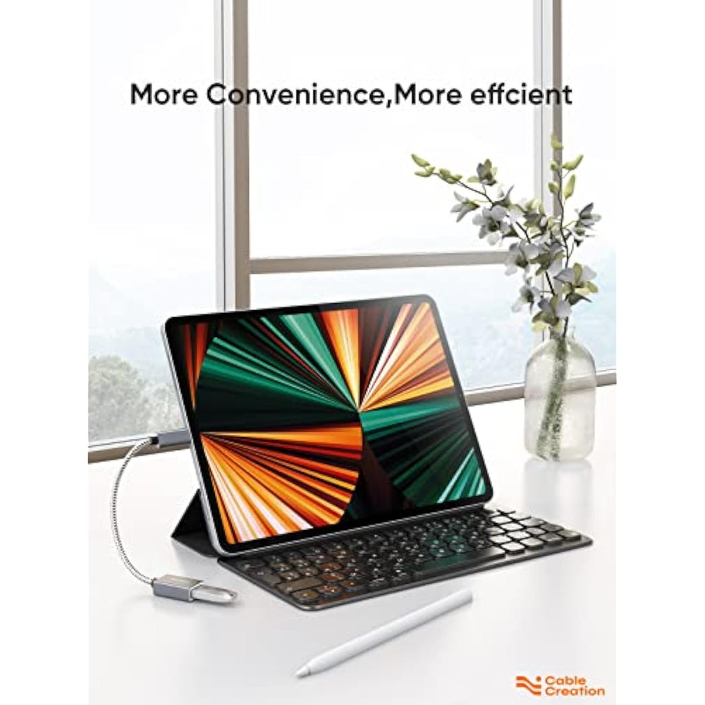 | USB C OTG Adapter: Connect standard USB A enabled devices and peripherals (Camera, USB hub, flash drives, USB card readers, keyboards, mice and more) to Type-C enabled devices such as smartphones, laptops, tablets that support USB On-The-Go. Kindly note: If this adapter doesn’t work for your iPad, please upgrade your iPad OS to try again. | | 5Gbps Super Speed: The usb 3.2 Gen1 type c adapter is designed for high speed data transfer up to 5 Gbps, 10x faster than USB 2.0. It can sync photos, videos and musics in seconds. Kindly note: Charging is NOT recommended as it is mainly used for data transfer. | | Nylon Braided Jacket Aluminum Alloy Shell: Tangle-free Nylon Braided Design, Premium Aluminum Alloy Shell and Gold-plated Connector add additional durability and stability to this adapter, which makes it more durable than normal usb c adapters.. | | Compatibility List: USB-C end is Host side, compatible with MacBook Air (2018~2020), iPad Pro 2020/2018, 16inch MacBook Pro 2020, 15inch MacBook Pro(2016~2019), 13inch MacBook Pro(2016~2020), MacBook 12 inch(2015~2017), Surface Go, Surface Book 2, XPS 13/15, Moto Z8, Galaxy S22/S22Ultra/S20/S20+/S20Ultra/S10/S10+/S10e/S9/S9+/S8/S8+, Note 8/9/10, P9/P10, P20, Mate 20 10 Pro, O*ne Plus 6/6T/5/5T/3/3T, Pixel 3/3XL/2/2XL, and upcoming devices with USB-C port. | | What You’ll Get: [1-Pack] 0.5ft CableCreation USB-C to USB 3.0 female adapters, with our 24 months product and 24/7 friendly technical support. | |