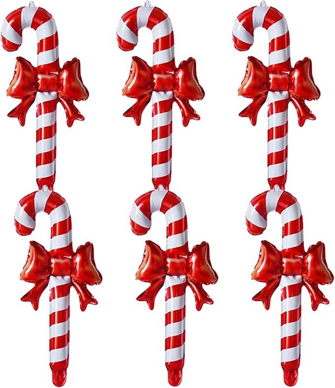 This candy cane balloon set includes six festive Christmas candy balloons featuring cute bow designs, along with one roll of ribbon and one plastic straw for easy setup. Made from high-quality foil, the balloons are self-sealing, reusable, and designed to stay vibrant throughout your celebration. Perfect for decorating Christmas parties, candy-themed events, birthdays, baby showers, engagements, and New Year gatherings, these balloons add a cheerful and colorful touch to any occasion. Use them to create hanging displays, table centerpieces, or wall decorations that fill your space with sweet holiday charm and a joyful festive atmosphere.